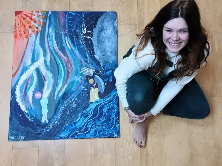 The name reflects the artists’ shared inspiration — the Cornish coastline — and the tactile, textural nature of their work. Gemma’s ocean-inspired paintings will sit alongside Bella’s mixed-media pieces, which celebrate the incredible diversity of seaweed species along the Cornish coast.
