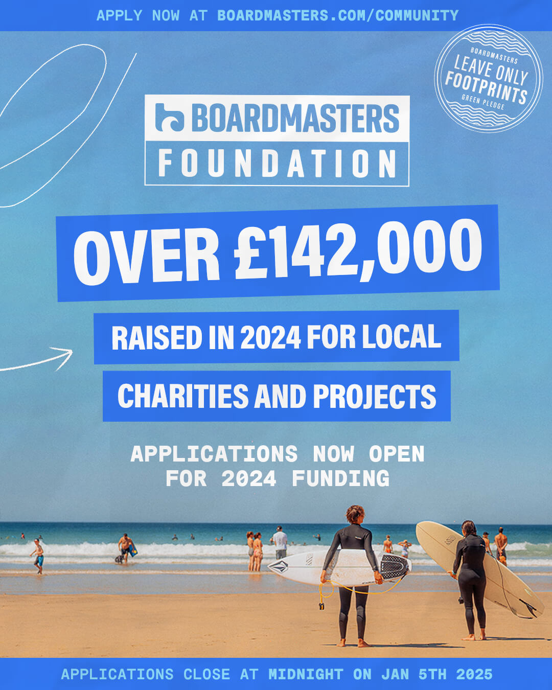 Boardmasters has announced that its Foundation funding applications for 2024 are now open, giving local projects and charities the chance to benefit from the festival’s fundraising efforts. This year, over £142,000 has been raised for the festival season, with the funds set to be distributed to successful applicants in Spring 2025.