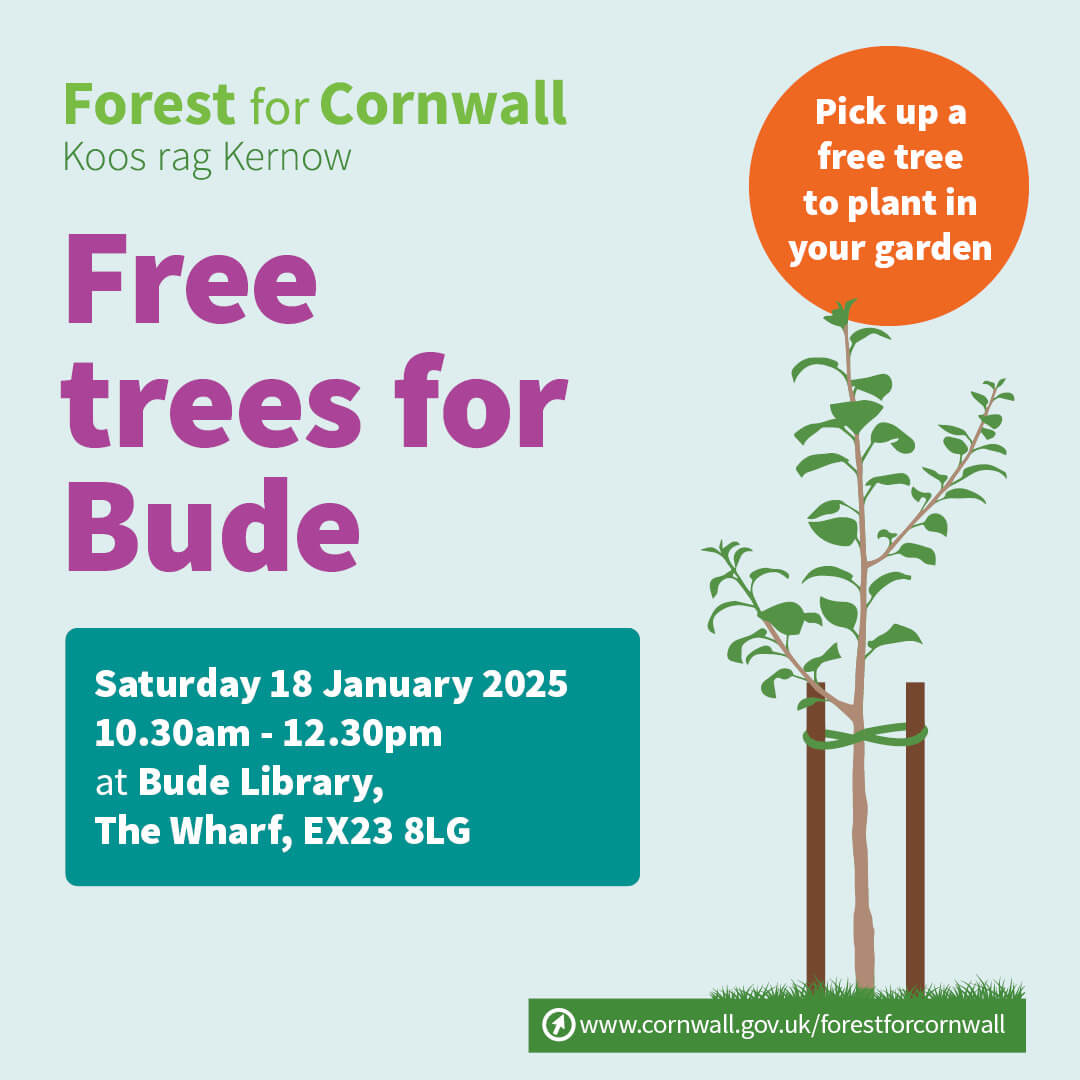 Looking to add some greenery to your garden? Cornwall Council’s Forest for Cornwall team is giving away free trees at several locations across the county, starting at Bude Library on Saturday, 18th January.
