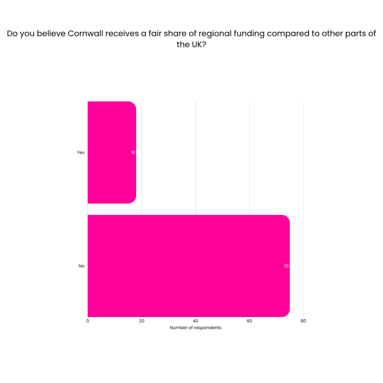 A strong 80% of respondents also believe Cornwall doesn’t receive its fair share of regional funding compared to other parts of the UK. The Chamber argues this isn’t about grievance but fairness, with Cornwall leading in food security, clean energy, and critical minerals.
