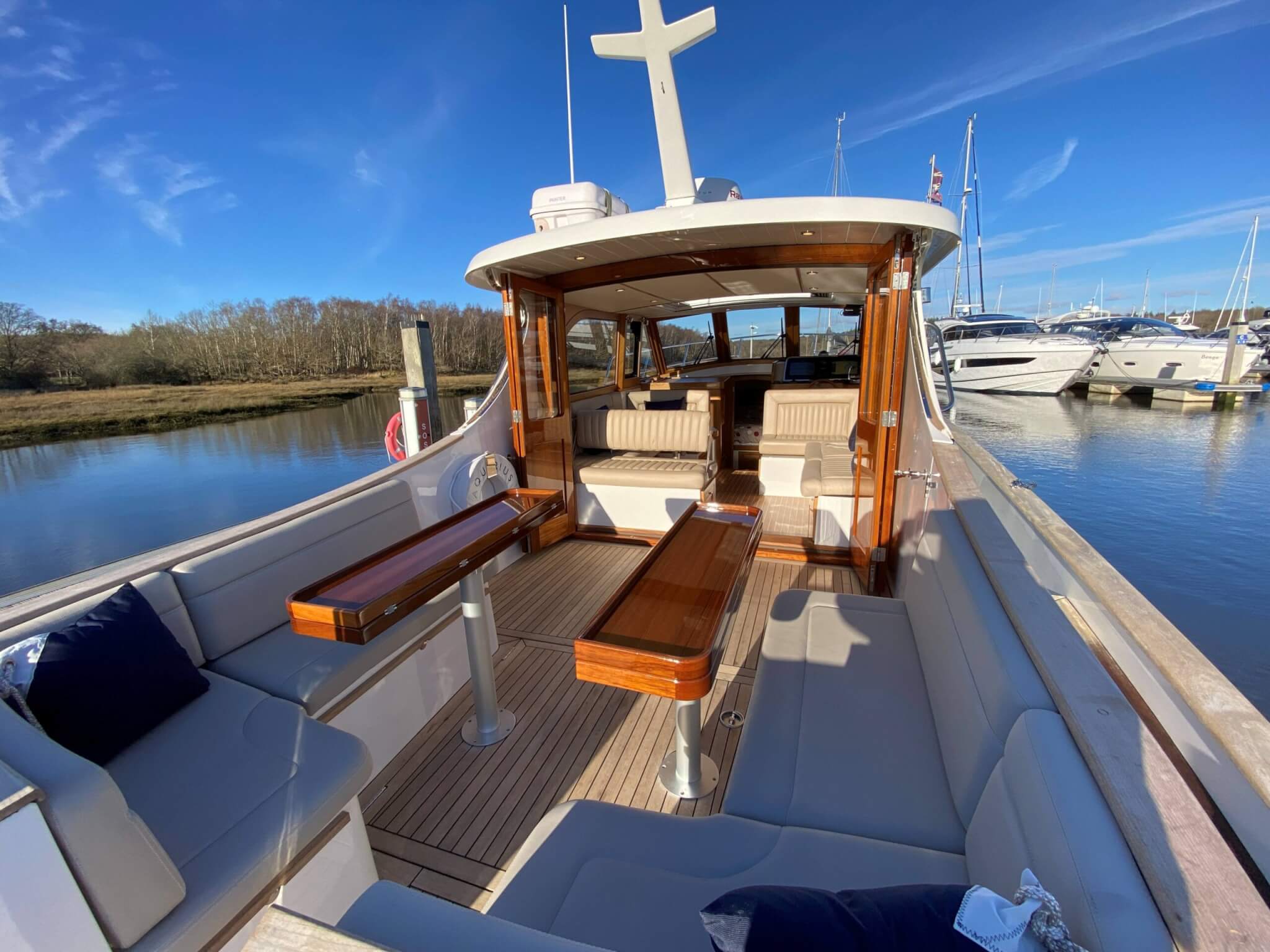 Also heading to Swanwick is the Duchy 35 ‘Aquarius’, currently available through Cockwells’ brokerage. Completed in 2021 and in exceptional condition, this single-cabin model boasts custom extras like: