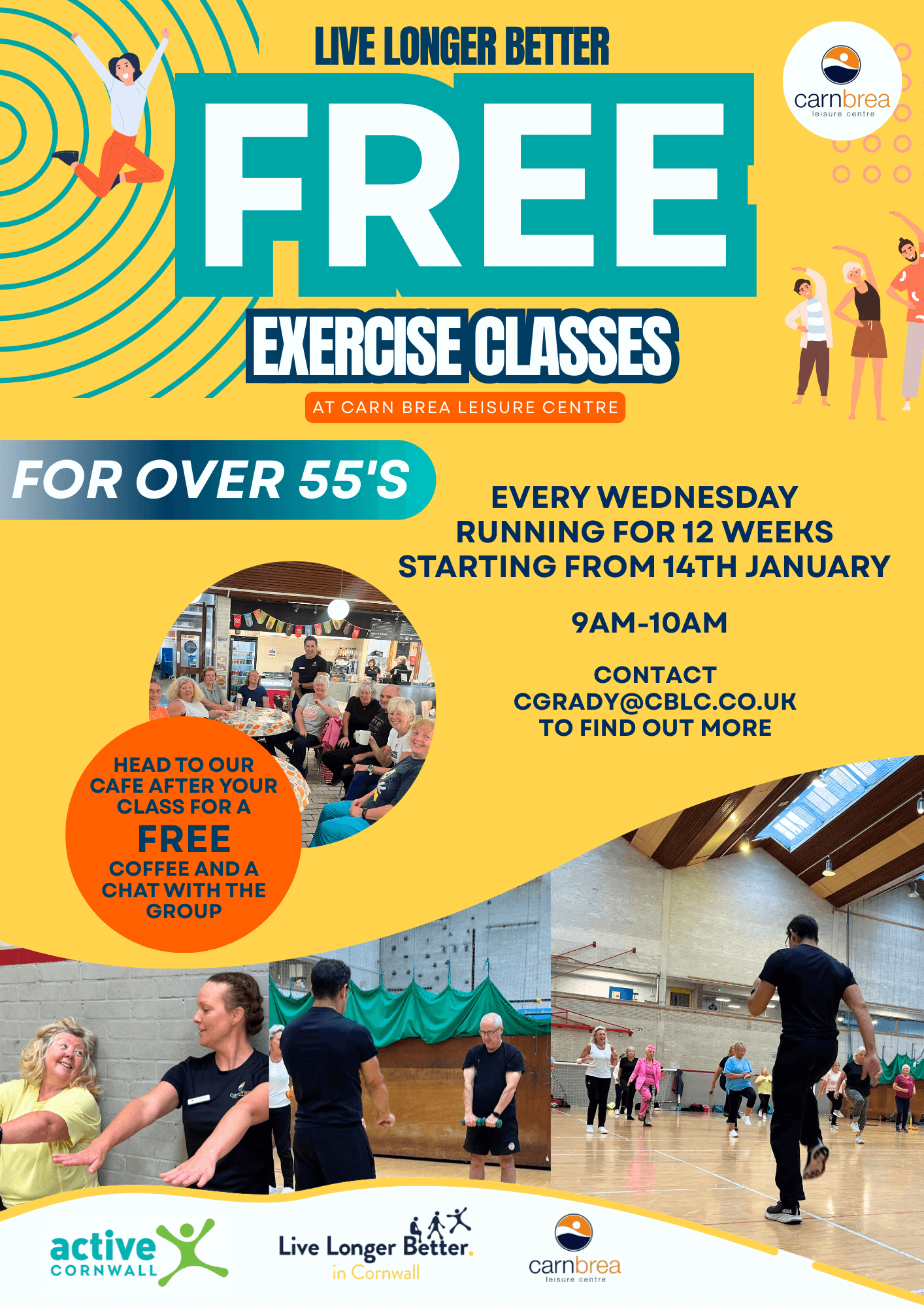 Carn Brea Leisure Centre has confirmed that its free Over 55s exercise classes will return in January, bringing back the popular weekly session and café meet-up.