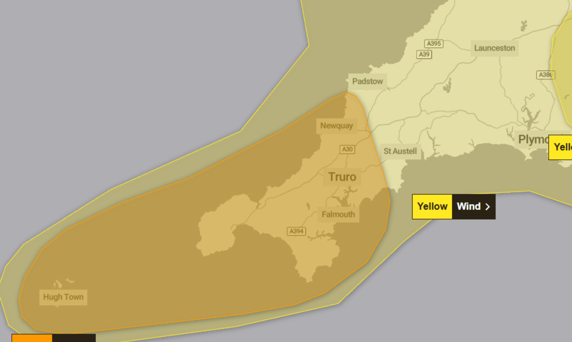 Jan 8: 08/01/2026 – Weather in Cornwall – Amber Weather Warning For Wind