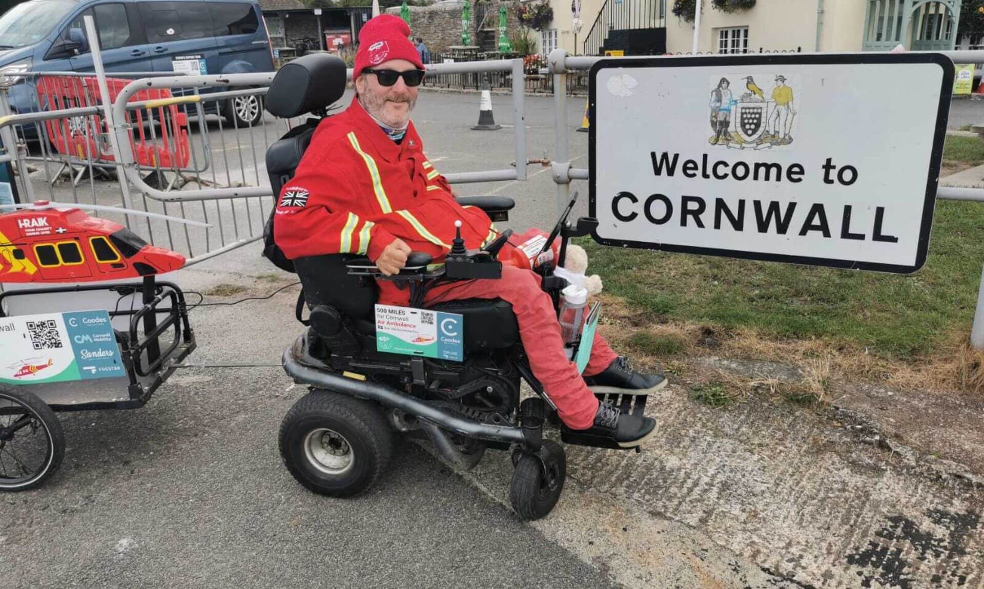 Despite the physical challenges, including a malfunctioning motor on his electric wheelchair, Steven’s spirits remain high. Thanks to prompt assistance from Cornwall Mobility, who fitted a new motor, and Cornwall Magnetics, who addressed issues with the support van, the journey has continued relatively smoothly.