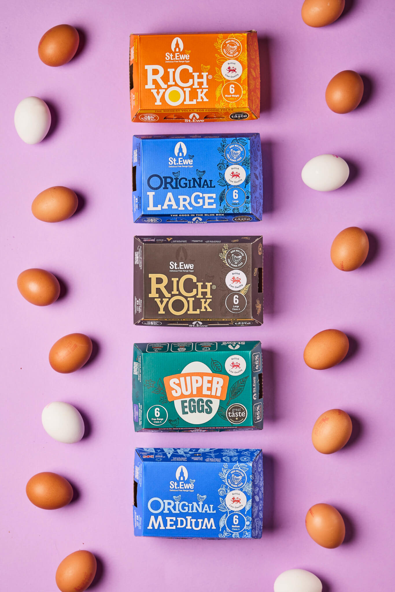 St. Ewe’s range includes Rich Yolk, Original, Super Eggs, Rich Yolk Luxuriously Large, and other speciality products, all produced by free-range flocks on its own and partner farms.
