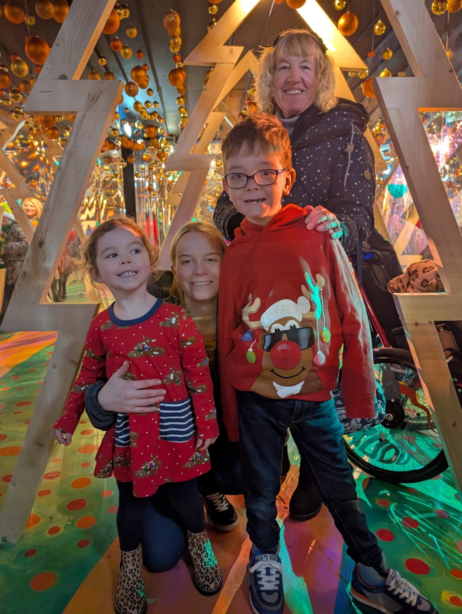 Photo: A family receiving support from Children’s Hospice South West has some fun visiting the Tunnel of Lights, Charlestown – Photo Credit: Steven Michell