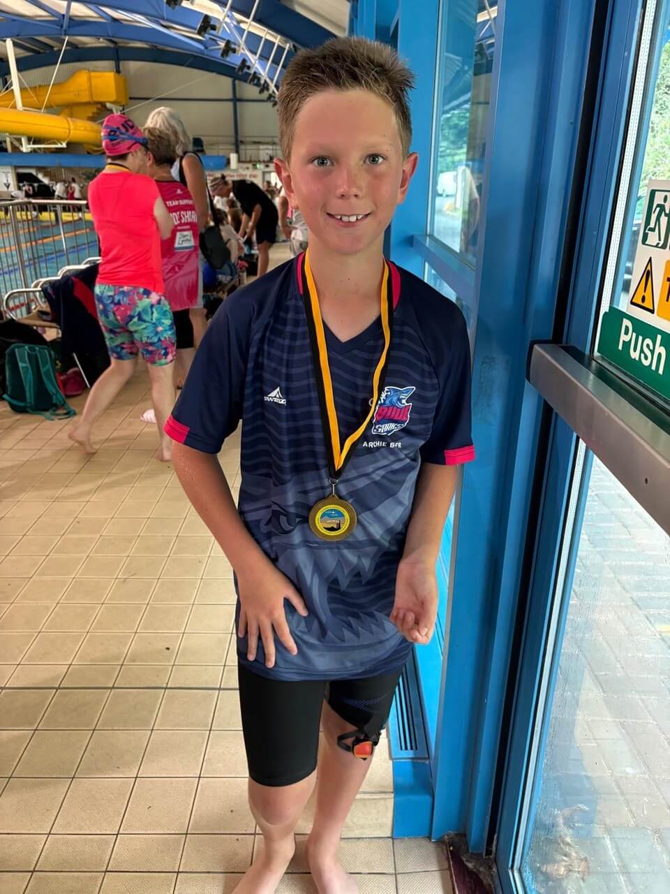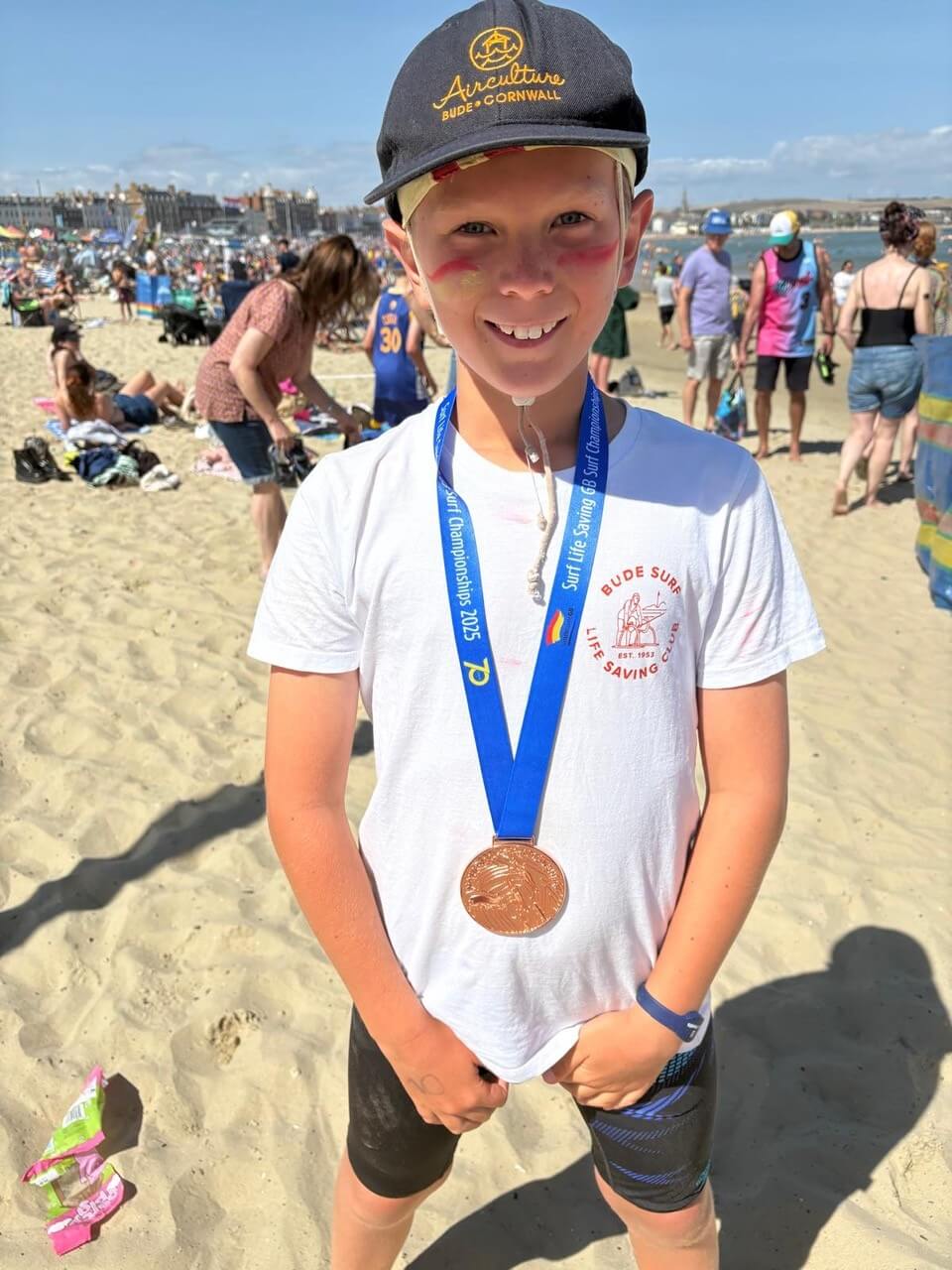 This summer he took third place in the National Nipper Surf Life Saving Championships in Weymouth. He has since moved into competitive swimming with Bude Sharks and has already qualified for the 2026 Cornwall County Swimming Championships.
