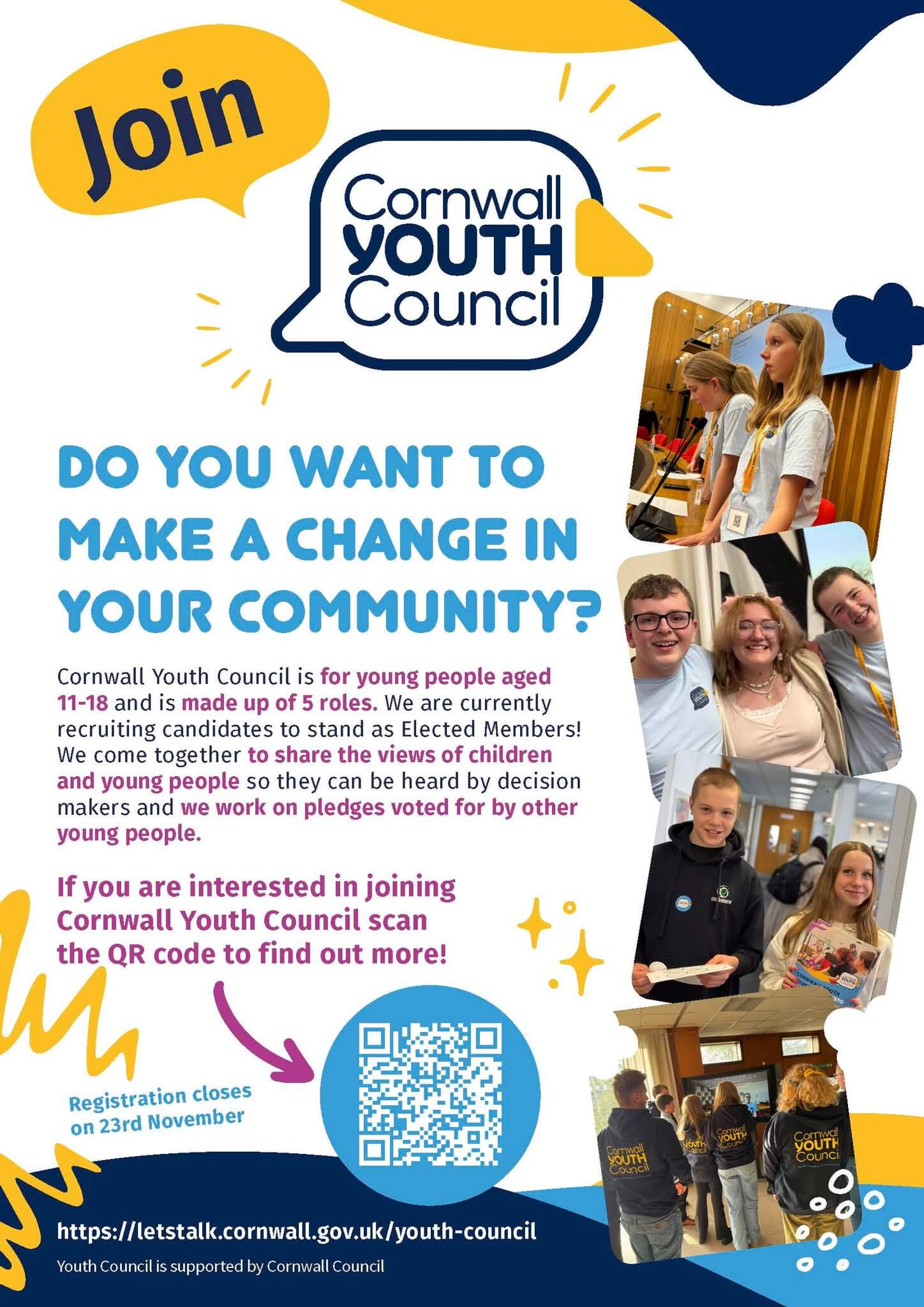 The Cornwall Youth Council says this is a chance for young people to have their voices heard and help shape the future of their communities. The deadline to apply is 23rd November 2025.