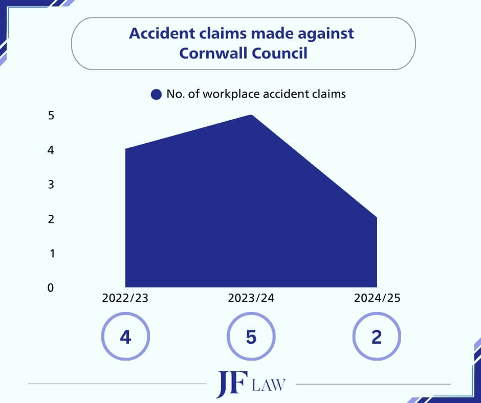 There were four workplace accident claims made against Cornwall Council in 2022. This increased to five in 2023, before dropping to two in the past year.