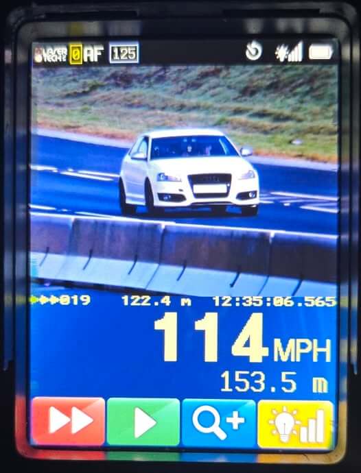 According to the Devon & Cornwall Police Road Safety Team, one of their officers was monitoring traffic when an Audi was recorded travelling at 114mph. The occupants were said to be so focused on the speedometer that they failed to notice a camera van ahead.