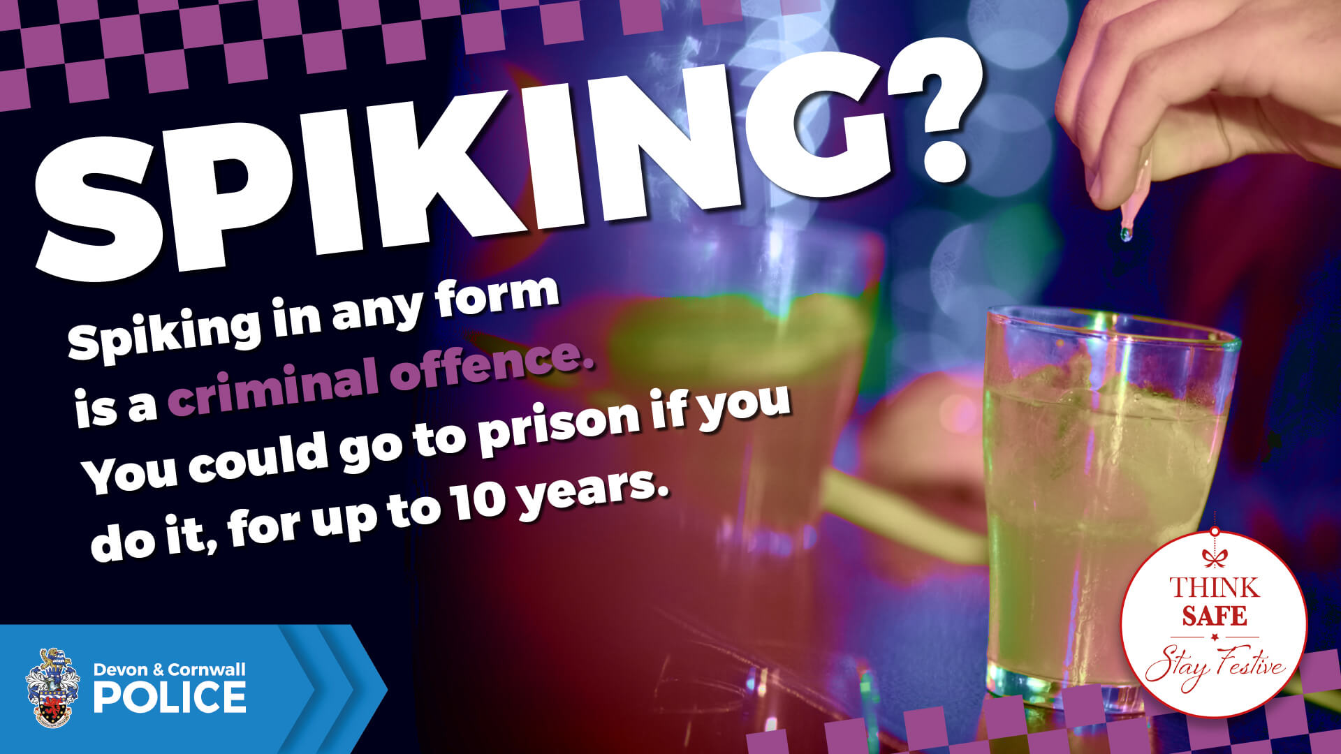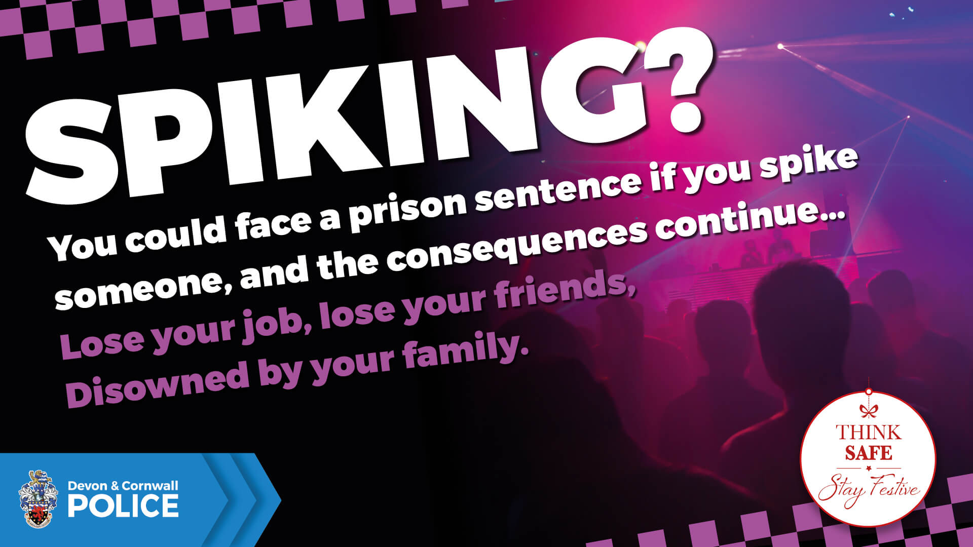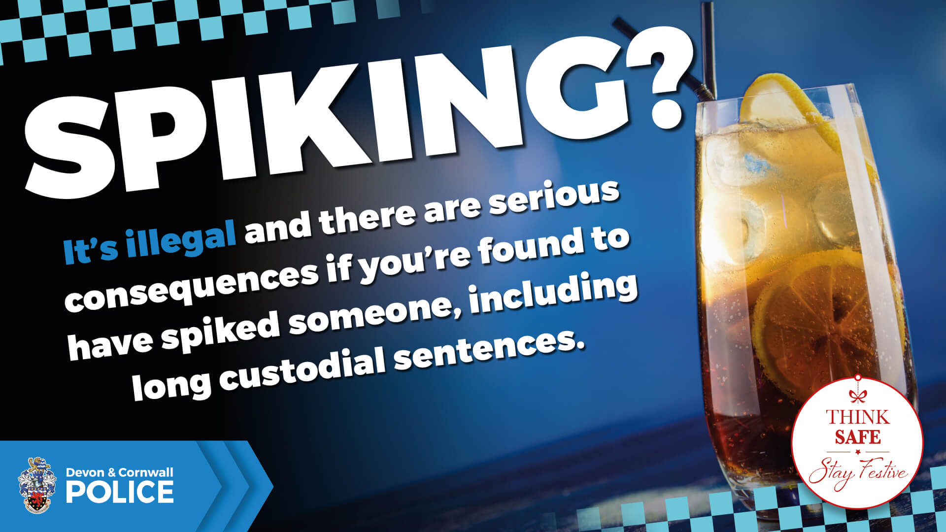 Devon and Cornwall Police are urging people heading out this Christmas to stay alert after warning that drink spiking, including adding extra alcohol without someone knowing, is illegal and dangerous.