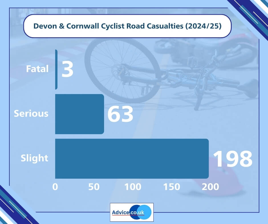 Devon & Cornwall Police have recorded more than 250 cyclist casualties over the past year, with new figures revealing where riders are most at risk and how severe those injuries have been.