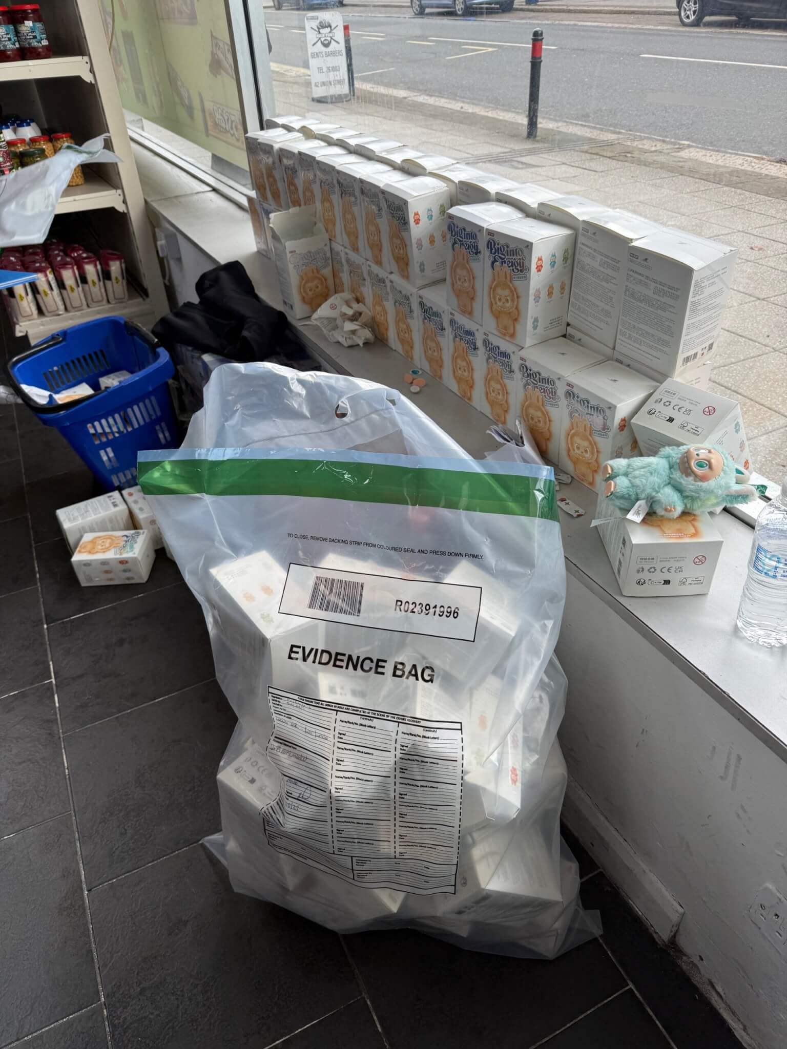 With support from Heart of the South West Trading Standards Service, over £100,000 worth of counterfeit and illegal products were seized during the operation. Items included cigarettes, tobacco and vapes, as well as several bags of fake Labubu-style toys with easily removable eyes and feet that could have posed a danger to young children.