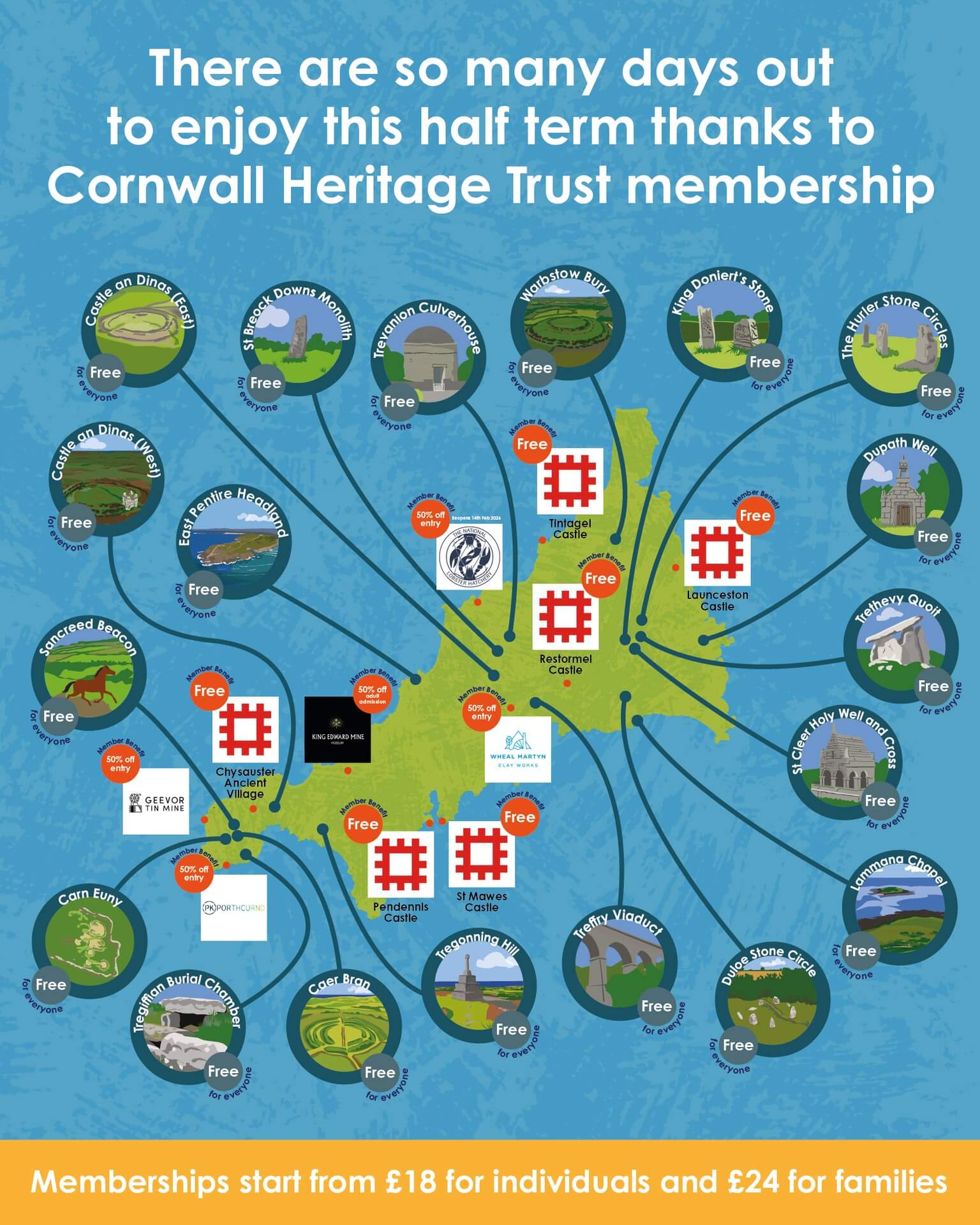 Membership starts from £18 a year for individuals and £24 for families. Benefits listed by the Trust include helping to protect and maintain 19 heritage sites across Cornwall, all of which are well worth visiting during the school break.
