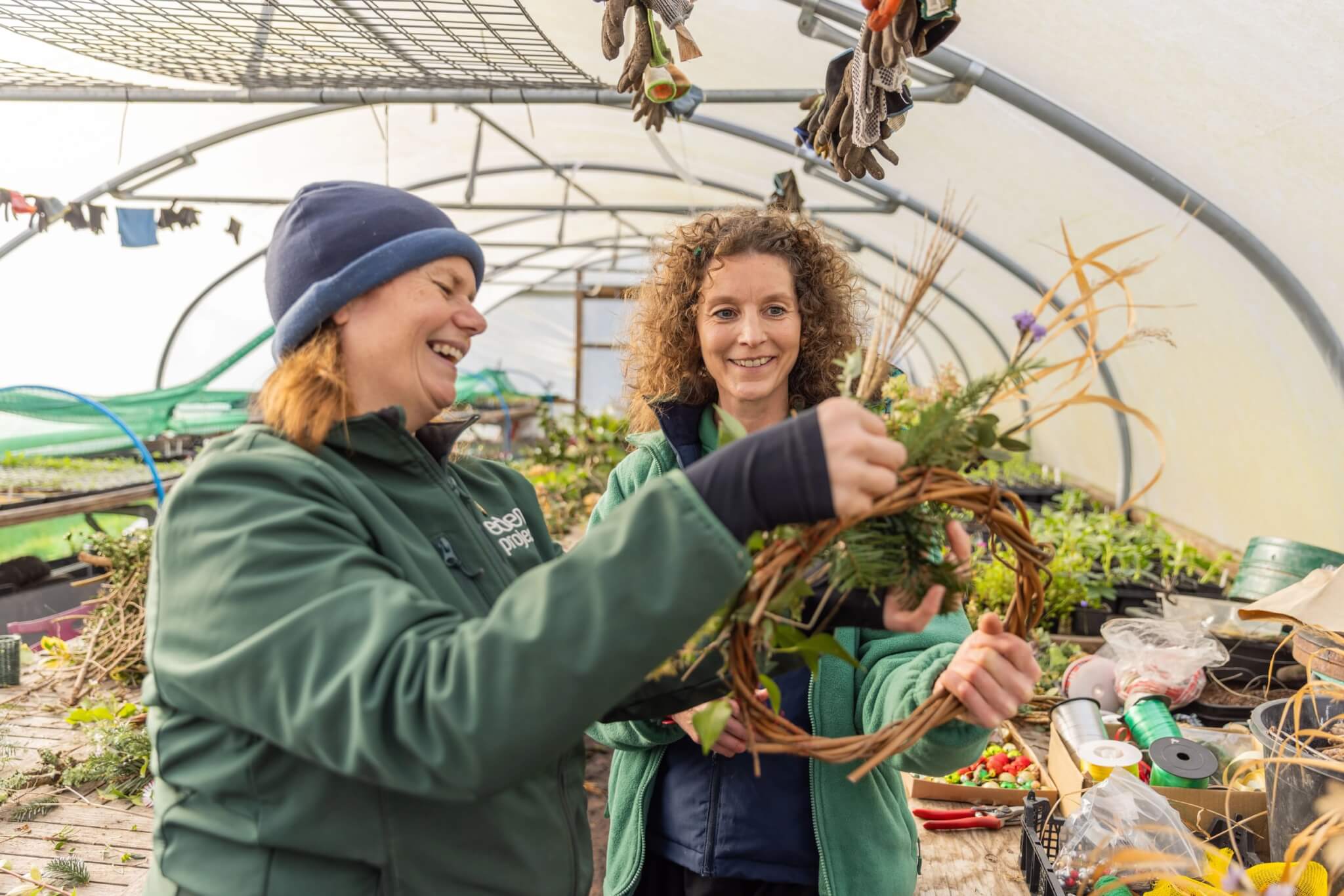 📷From left VICKI CARTER (therapeutic horticulturalist, Eden Project) and CORINNE BROWN (Nature Connections participant) engaging in Nature Connections activity
