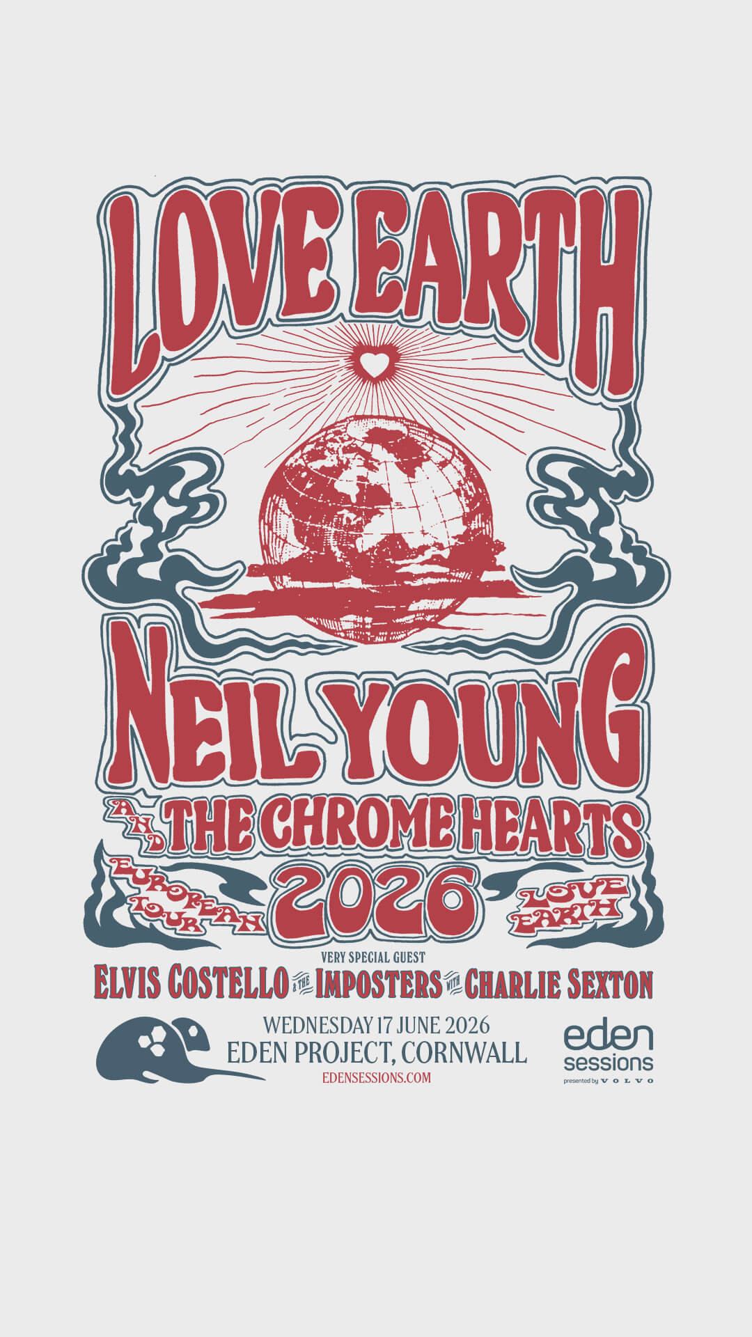 Neil Young and The Chrome Hearts have confirmed a new Cornwall date for their 2026 UK and European tour, with the Eden Project set to host the opening night of the summer run.