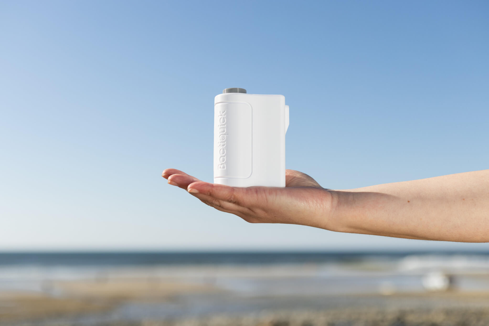 Launching on 15th May, to coincide with the start of the official bathing water season, the device is designed for use on the go, weighing less than 250g and no bigger than a coffee mug.