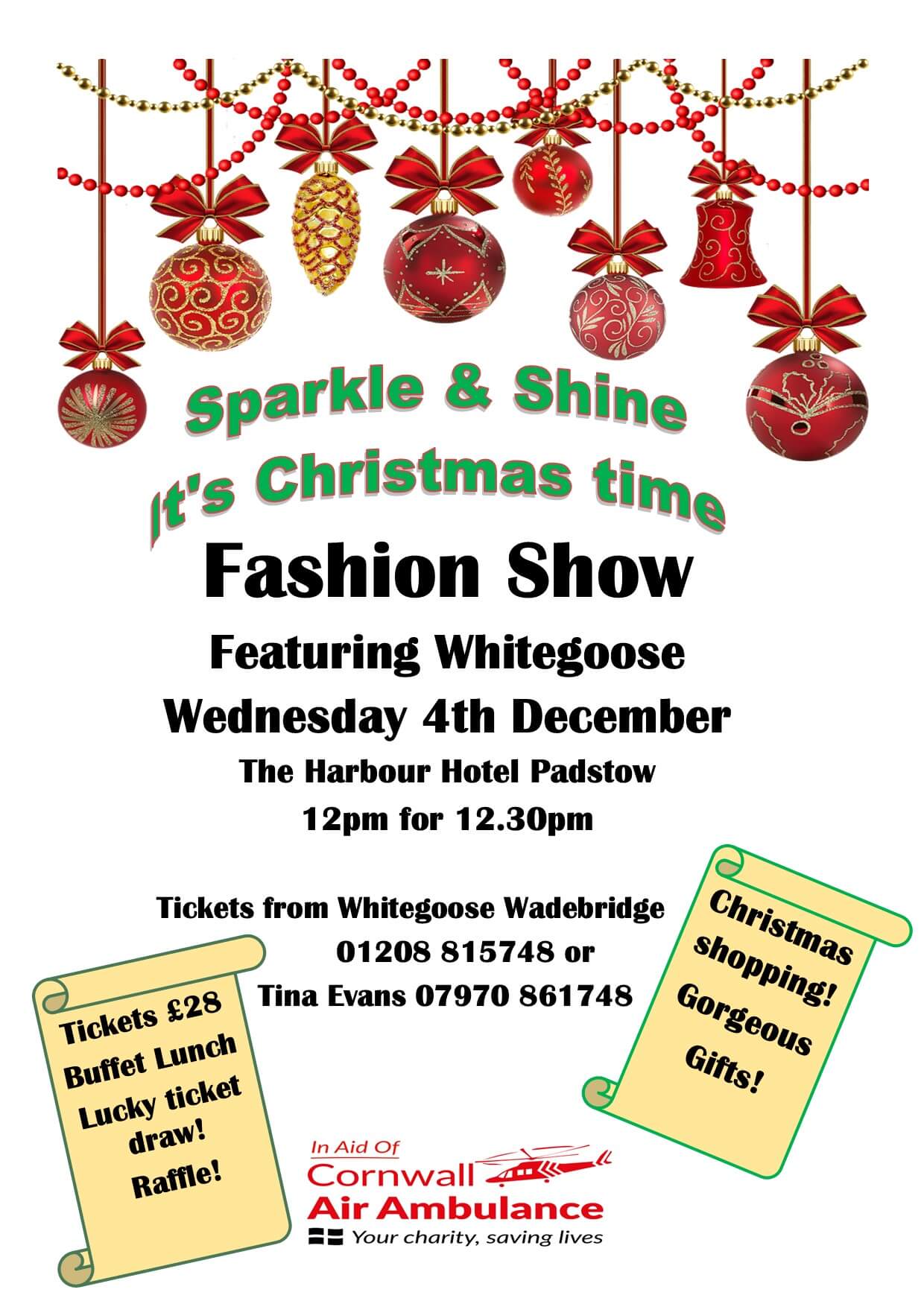 Get into the Christmas spirit! Fashion Show in aid of the Cornwall Air Ambulance taking place on Wednesday 4th December at the Padstow Harbour Hotel. Tickets on sale now!