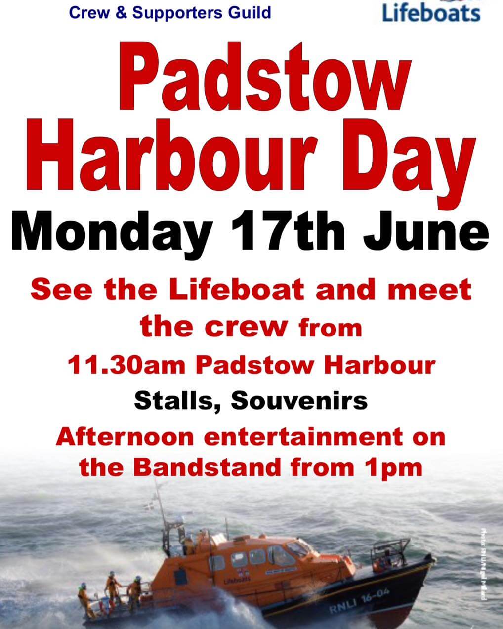 Join us on Monday 17 June for our first Harbour Day of the summer! Come and meet our fabulous volunteer crew and fundraisers and see Padstow RNLI lifeboat in Padstow Harbour from 11.30am.