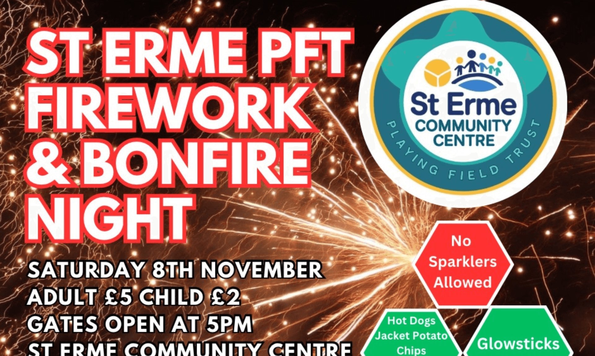 A community favourite with BBQ and hot food. Gates open 5.30pm, bonfire at 6.30pm, and fireworks from 7pm. Cash only: £3 adults, £2 children.