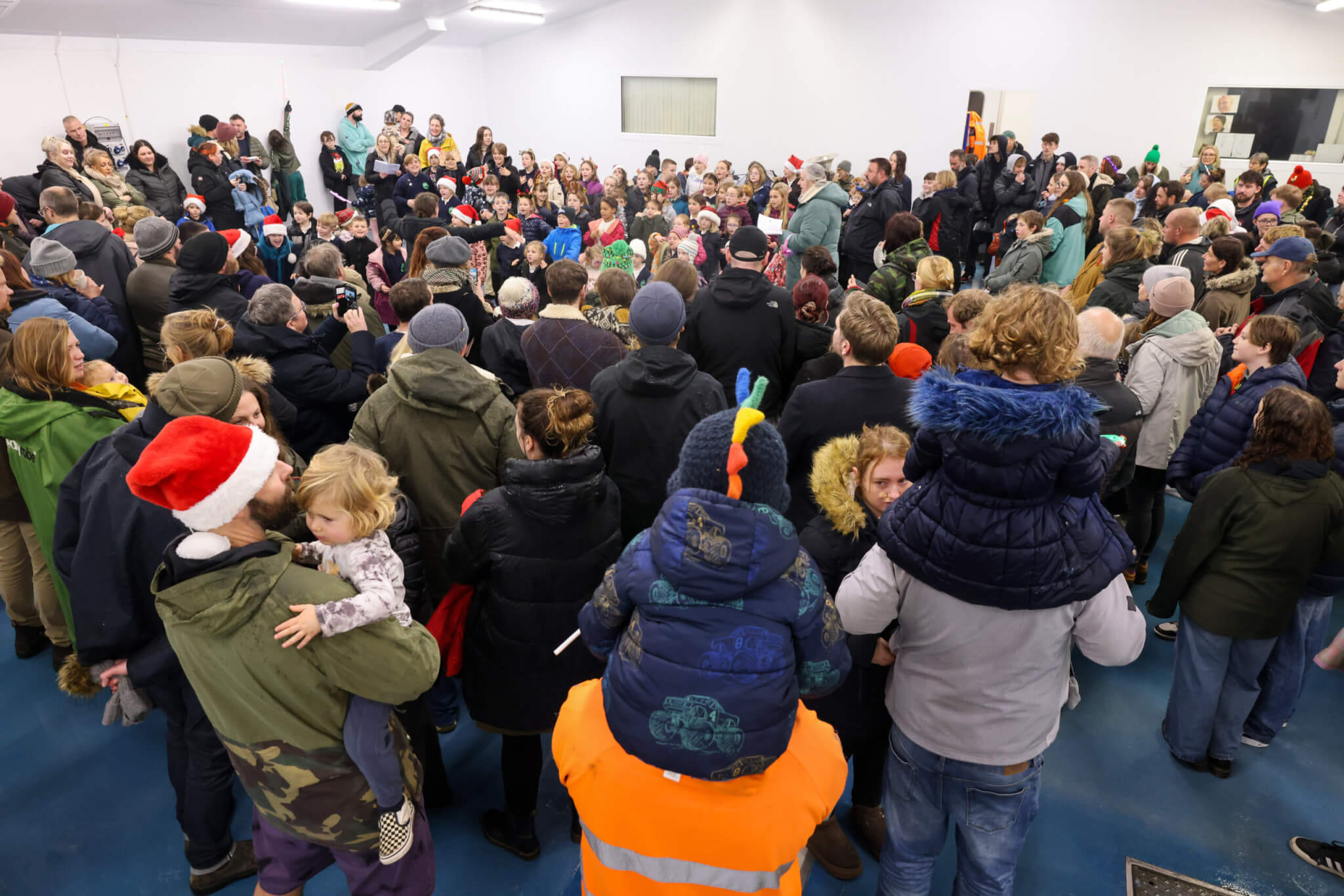 The evening began inside Newlyn Fish Market, providing welcome shelter from the gale-force winds. Visitors enjoyed a choir performance by pupils from Newlyn School before stepping outside to greet Father Christmas and watch the fireworks display.