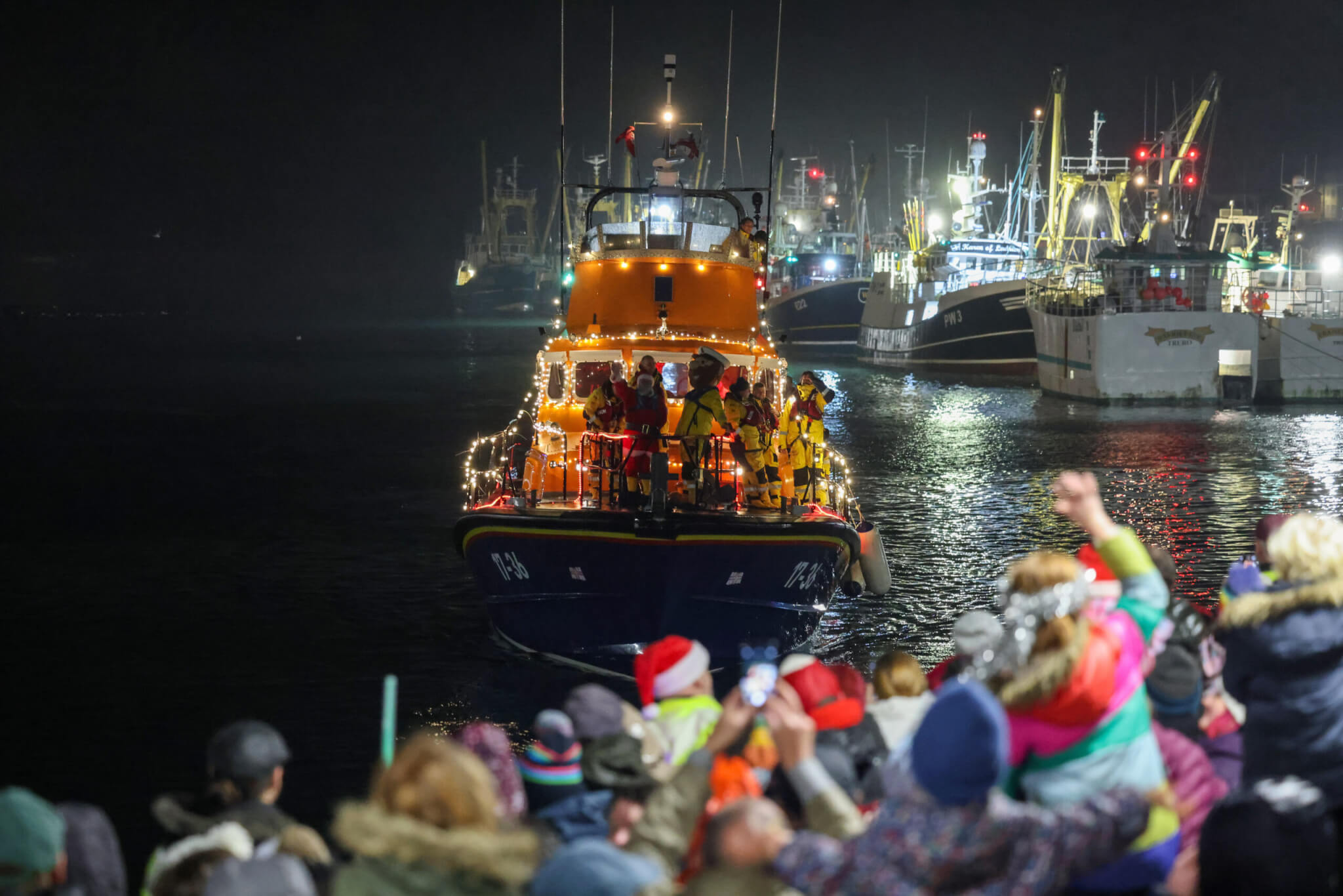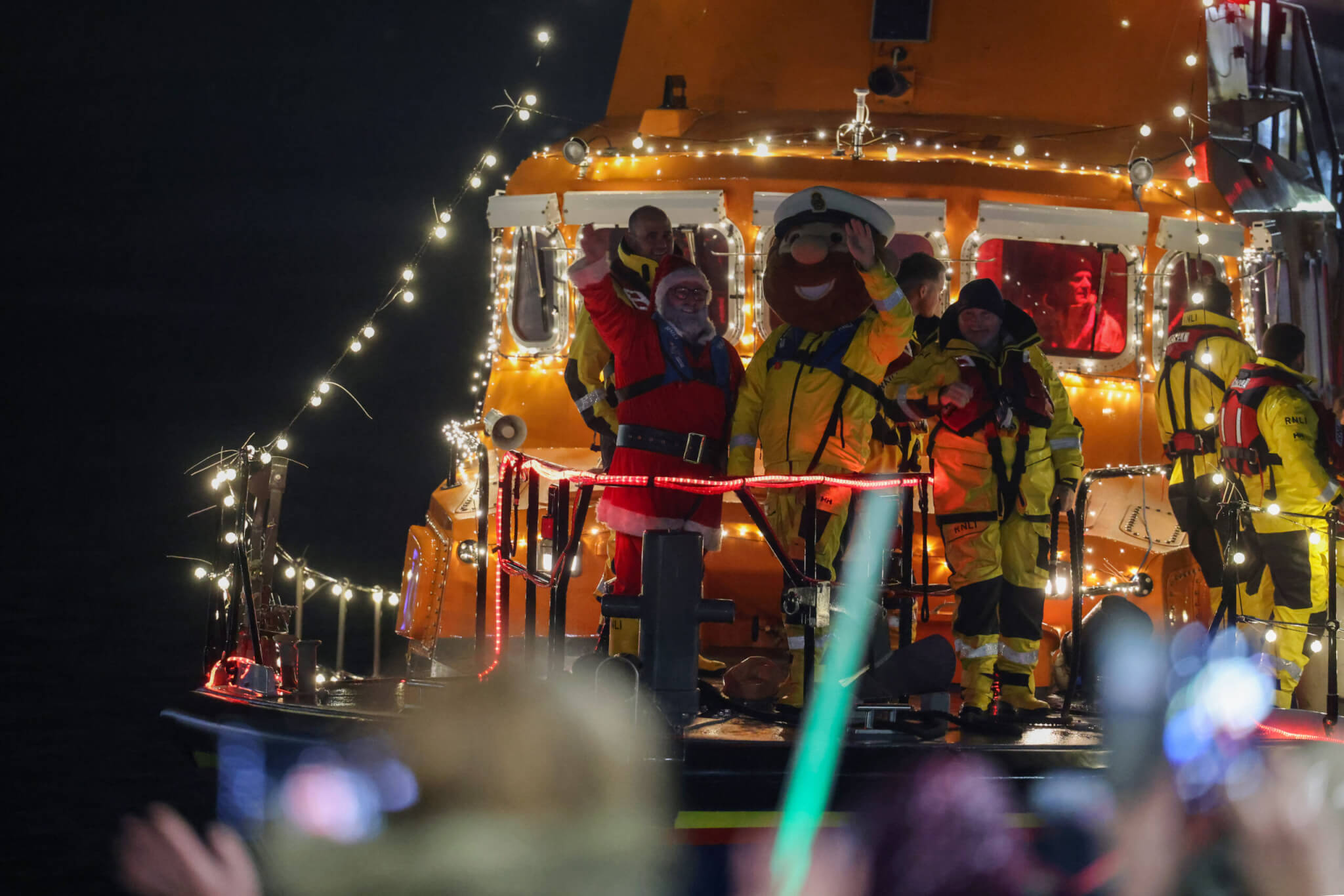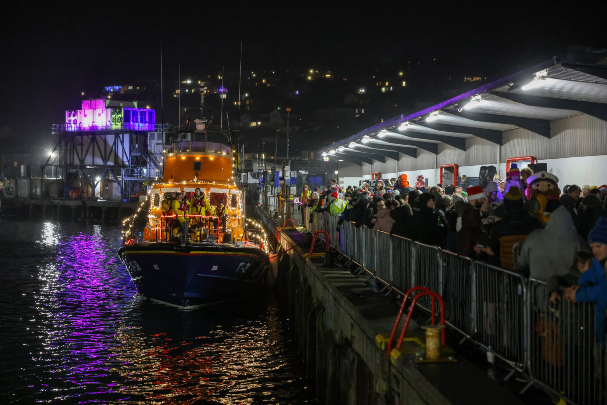 This year, safety concerns kept Santa’s reindeer in their stable, but he made a memorable arrival aboard RNLI Penlee’s Severn Class Lifeboat Ivan Ellen, much to the delight of the gathered crowd.