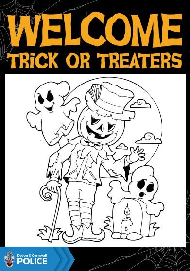 The posters can be downloaded from the Devon & Cornwall Police website and include both printer-friendly black and white versions of the ‘Sorry…no trick or treat’ poster and colour-in versions that welcome trick or treaters.