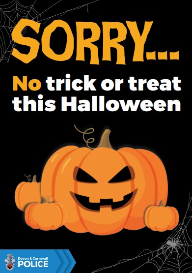 The posters can be downloaded from the Devon & Cornwall Police website and include both printer-friendly black and white versions of the ‘Sorry…no trick or treat’ poster and colour-in versions that welcome trick or treaters.