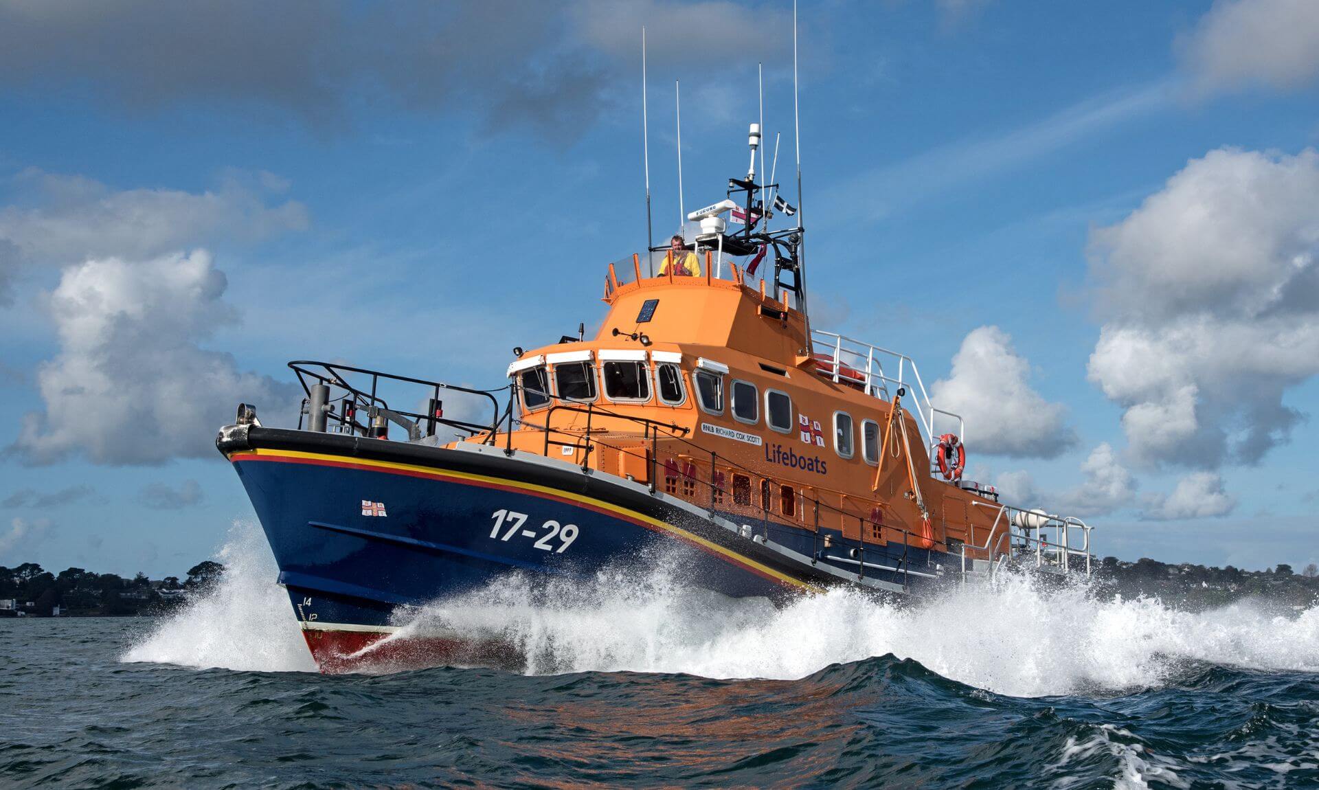 Photo: Falmouth’s Seven class all-weather lifeboat Richard Cox Scott on exercise in Carrick Roads Credit: RNLI/Simon Culliford