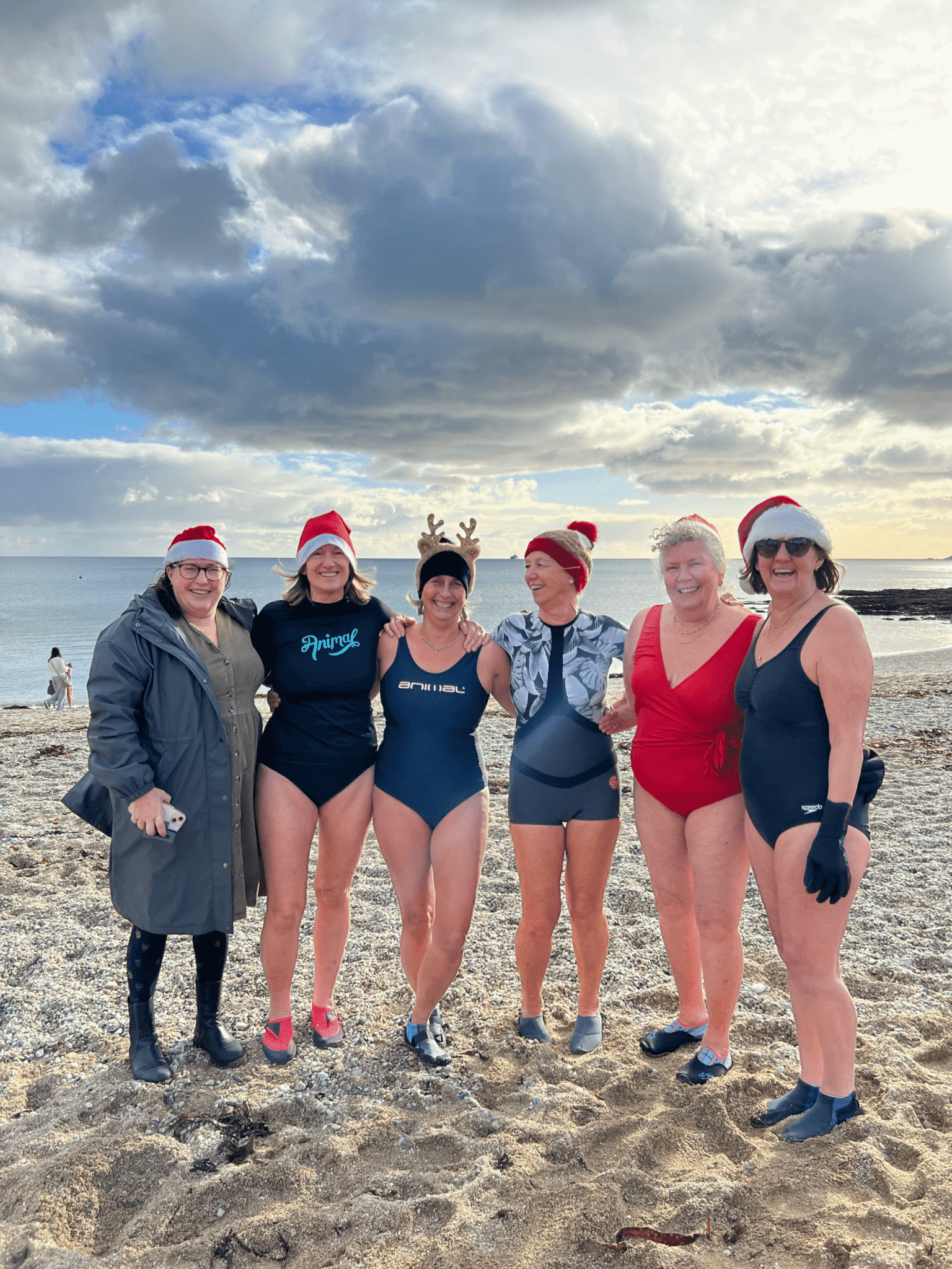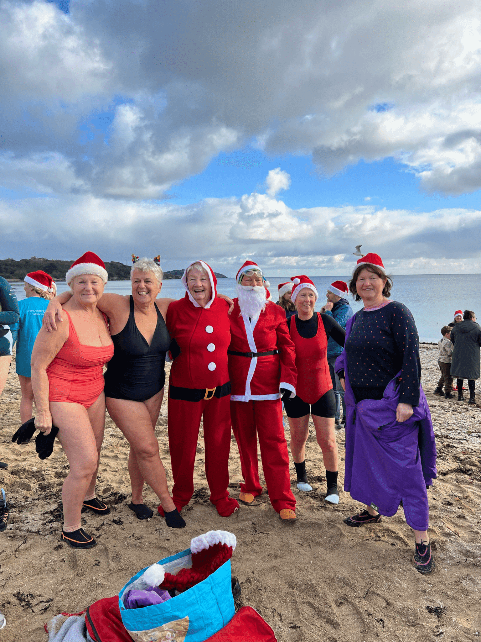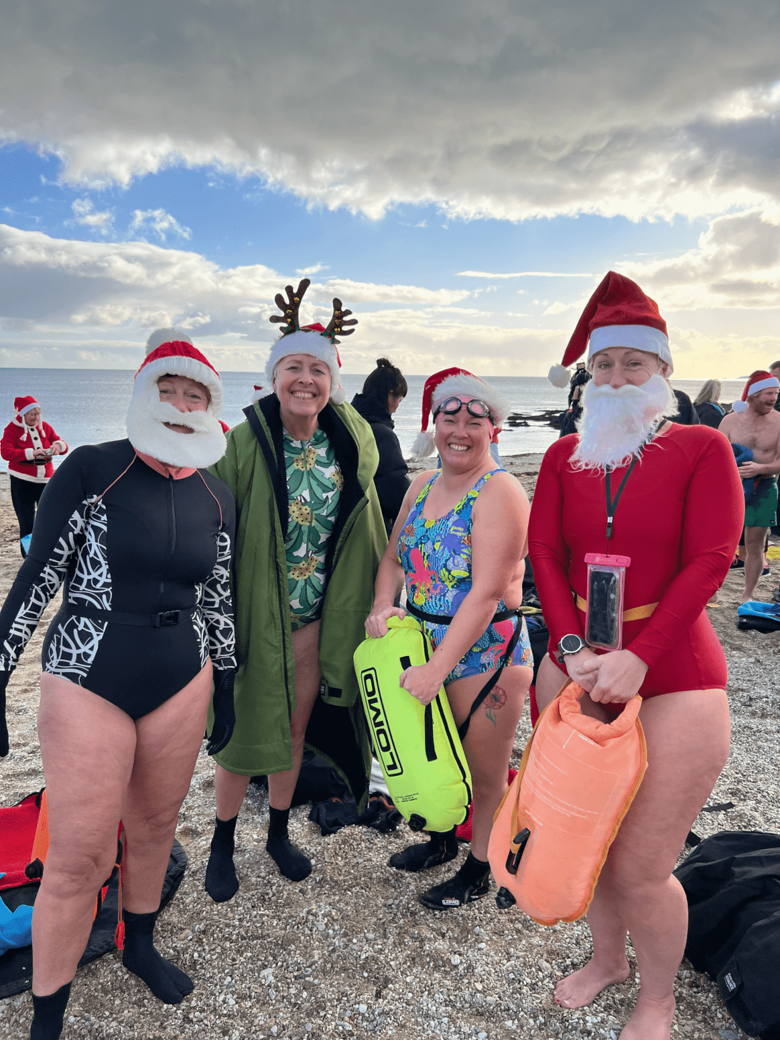 Anyone can join in, whether they want to swim, surf or simply support from the shoreline. Santa suits and festive spirit are welcome.