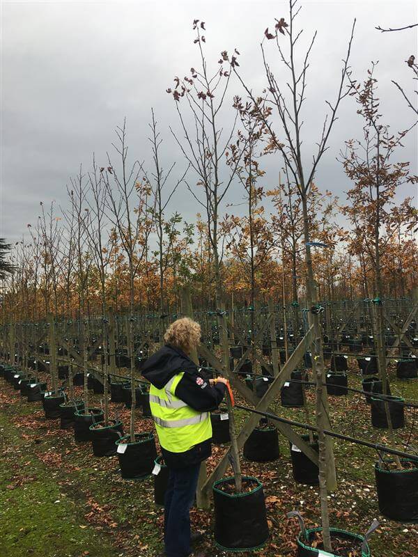 The selected species are a Tassel Cherry (Prunus litigiosa), a Fastigiate Beech (Fagus Dawyck Gold), a Sweet Gum (Liquiambar Worplesdon) and a Fastigiate Oak (Quercus bimundorum Crimschmidt). All four have been hand picked to ensure strong specimens are planted.