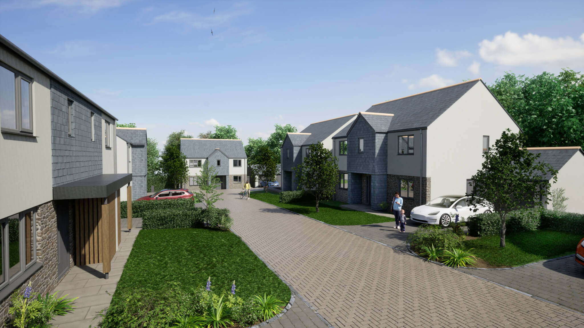 Each home will be built to modern energy-efficiency standards and will include eco-friendly features. These include natural slate roofs, locally sourced stone and smooth render finishes designed to reflect traditional Cornish architecture.