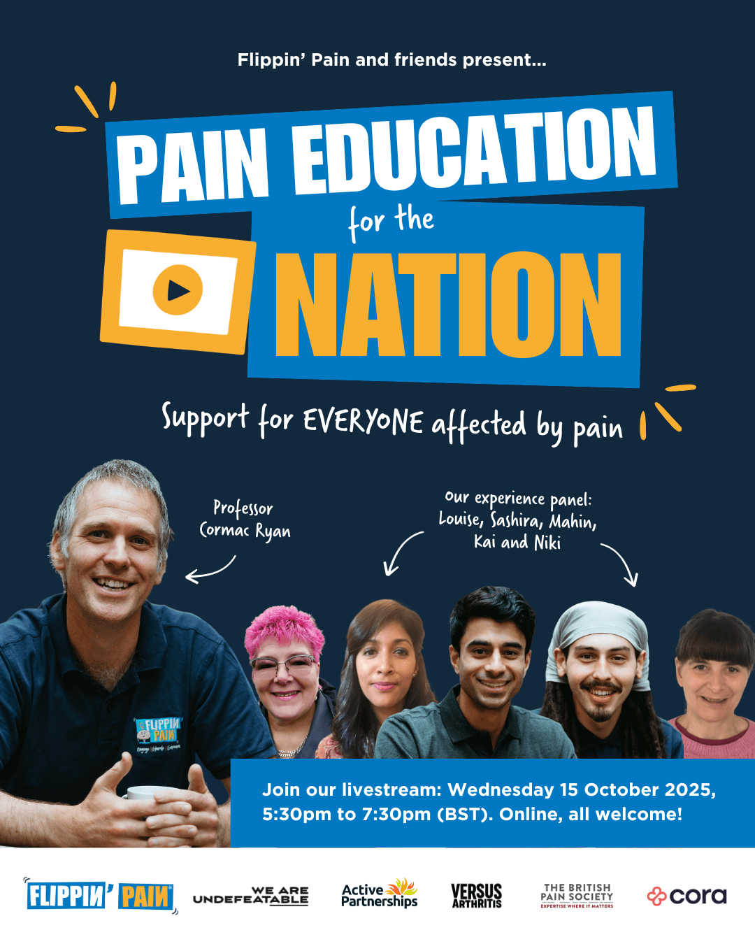 Flippin’ Pain is inviting people across Great Britain to take part in Pain Education for the Nation – a groundbreaking online event set to challenge the myths and misconceptions surrounding persistent pain.