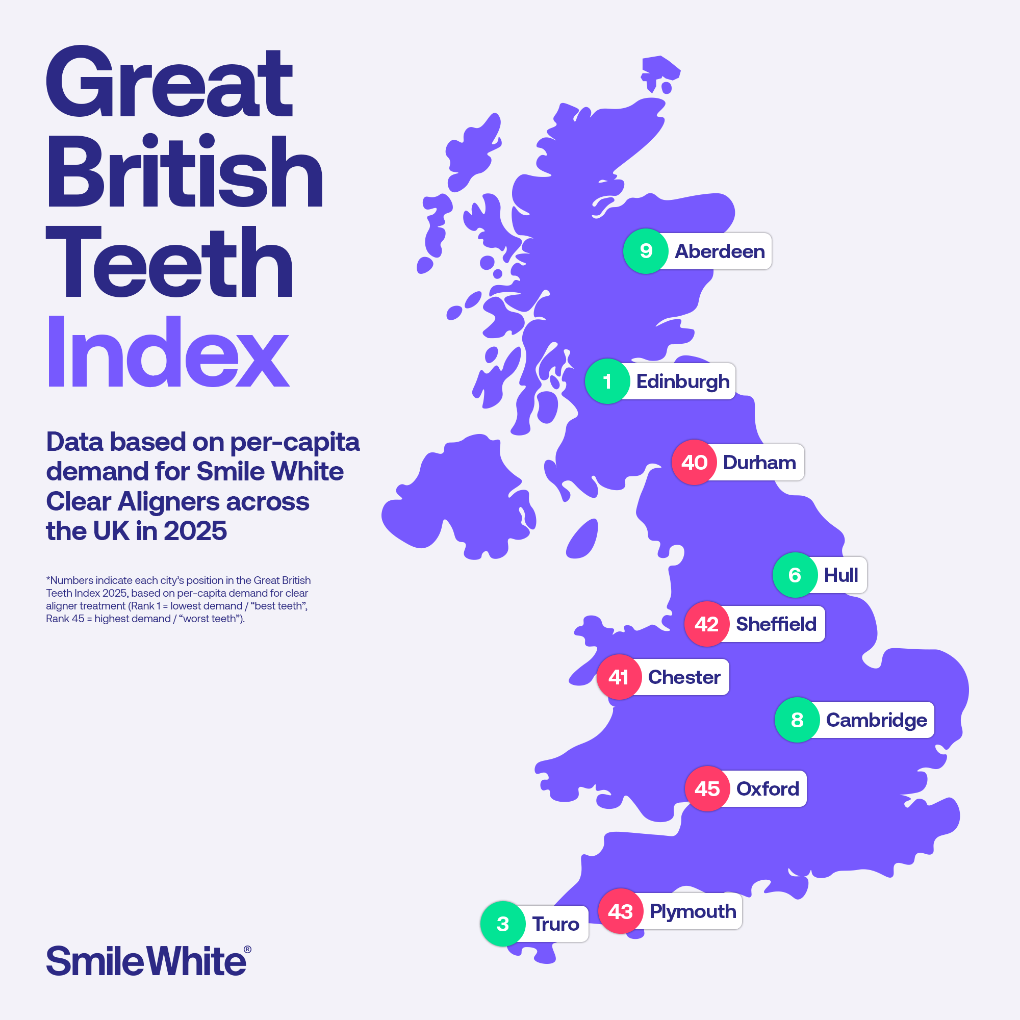 You can read the full Great British Teeth Index on the Smile White website at https://www.smilewhite.co.uk/blogs/aligners/smile-white-s-great-british-teeth-index-2025.