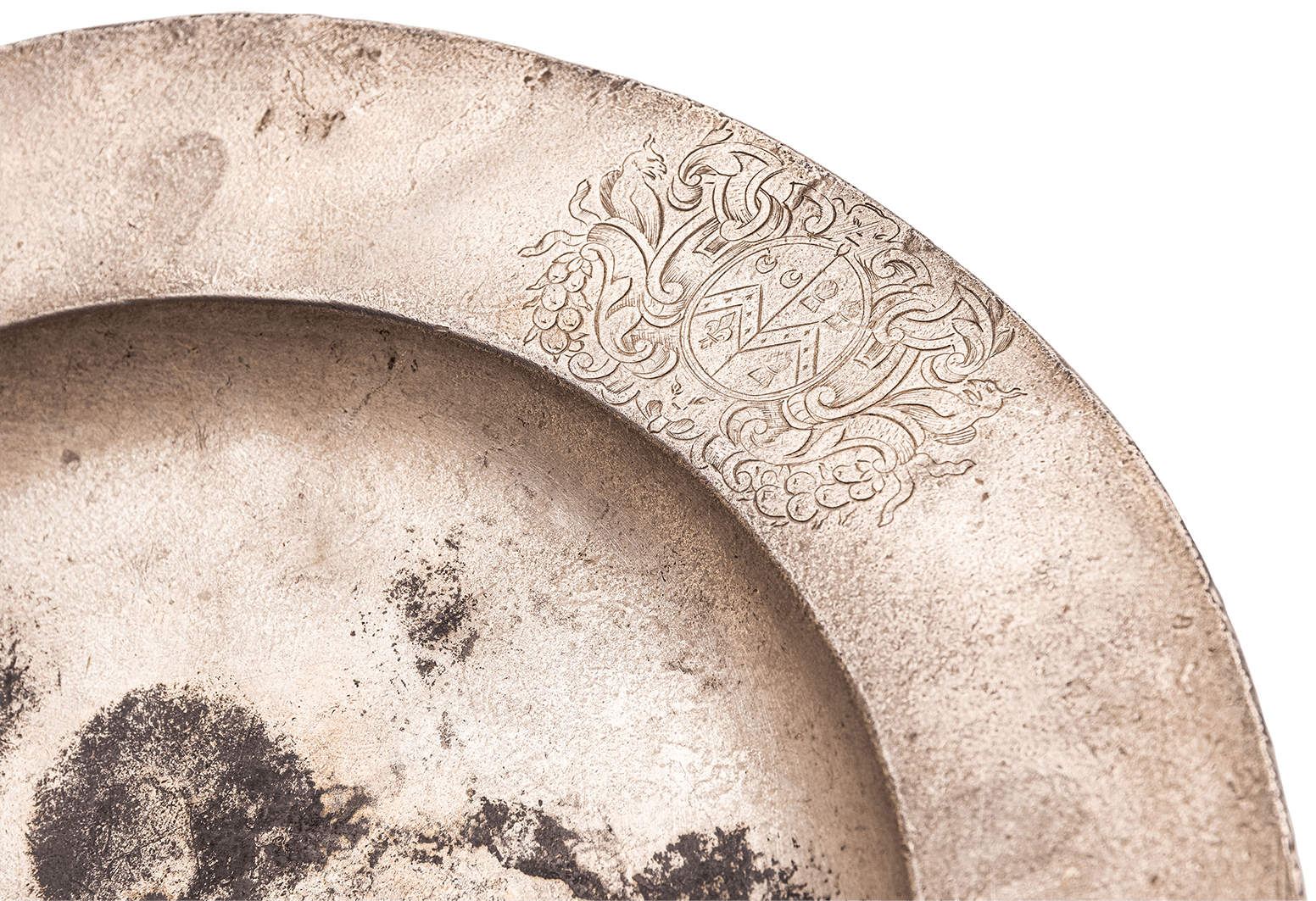 “The plate bears the admiral’s armorial on the rim and, although tarnished, dented and distorted, is in relatively good condition considering it spent more than 250 years beneath the waves,” said Philip Bridge from Richard Winterton Auctioneers.