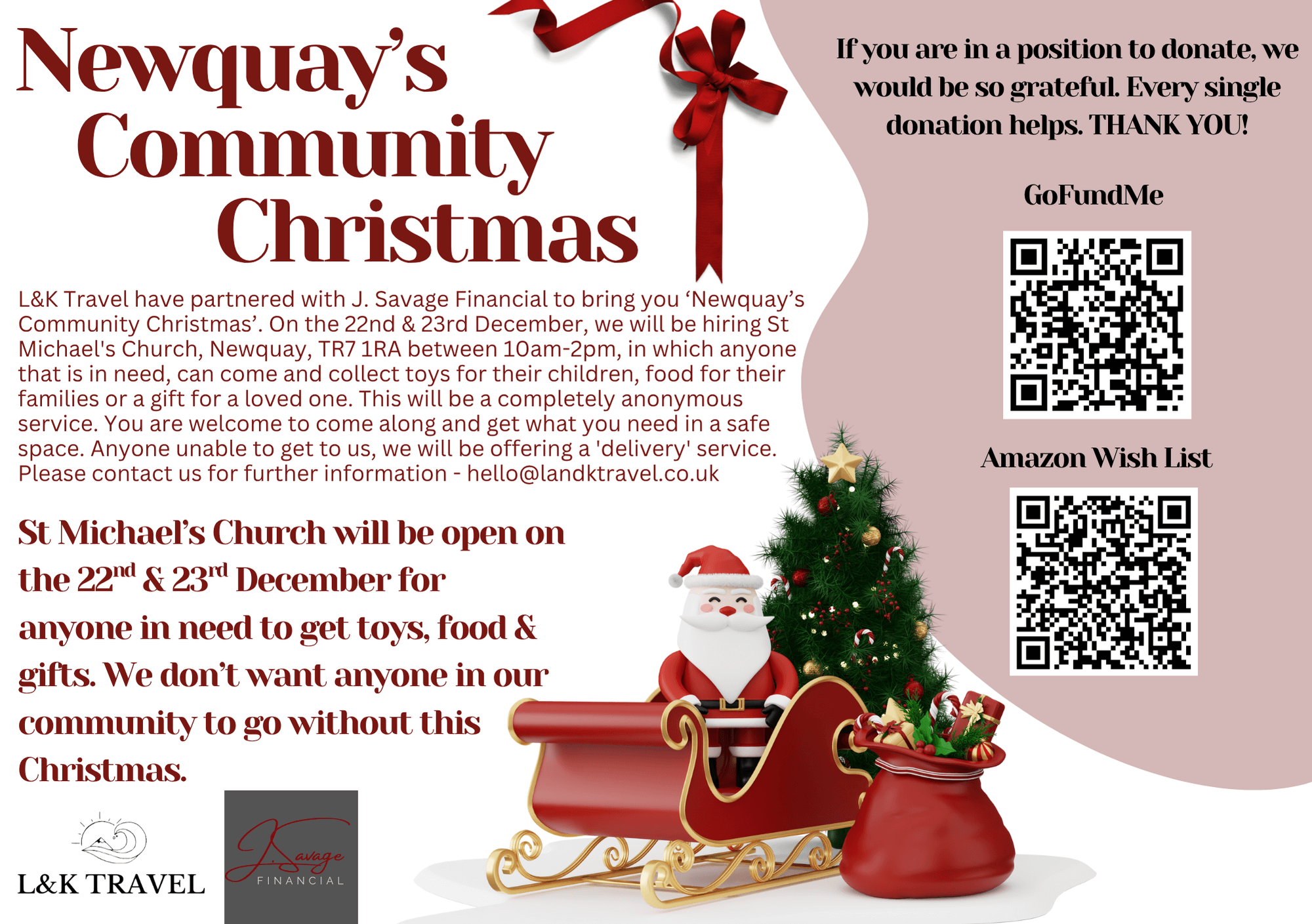 L&K Travel have joined forces with J Savage Financial to bring festive support to those most in need through Newquay’s Community Christmas 2025.
