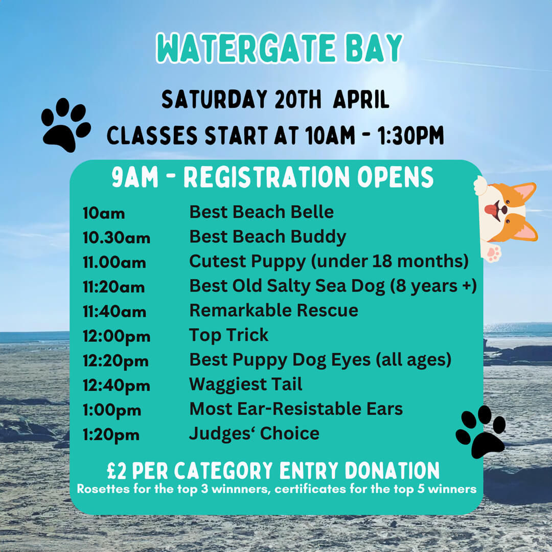 Watergate Bay Hotel and RSPCA Cornwall invite families to join in the celebrations, whether as participants or spectators. The event is designed to be a family-friendly affair, with the excitement of the competition and the joy of spending a day at the beach providing entertainment for all ages. Registration for the dog show begins at 9am, allowing plenty of time for attendees to sign up for their preferred classes.