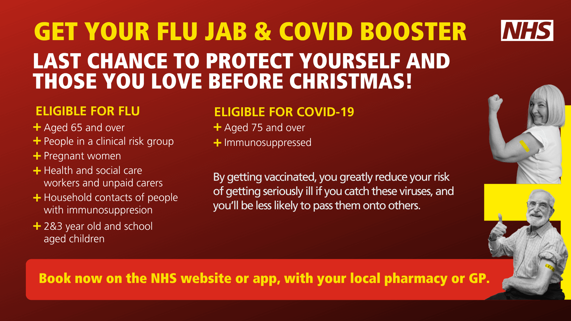 Flu and COVID-19 vaccines offer the best protection against becoming seriously unwell. Anyone eligible is encouraged to book their vaccination as soon as possible.