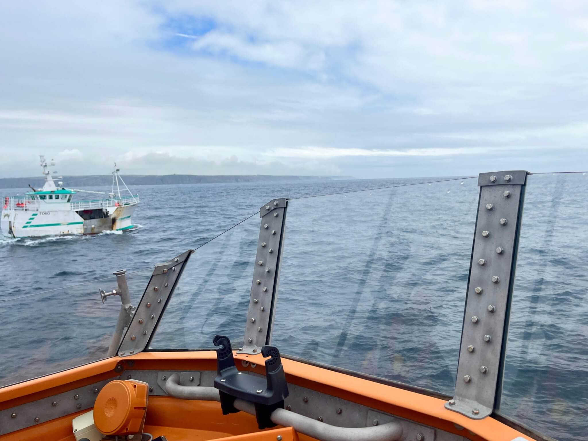 The Penlee crew was redirected to support Sennen Cove RNLI who had been sent to assist the potting vessel Emma Louise (TO60), a 6.42-metre boat that was reported to be taking on water off Pendeen.