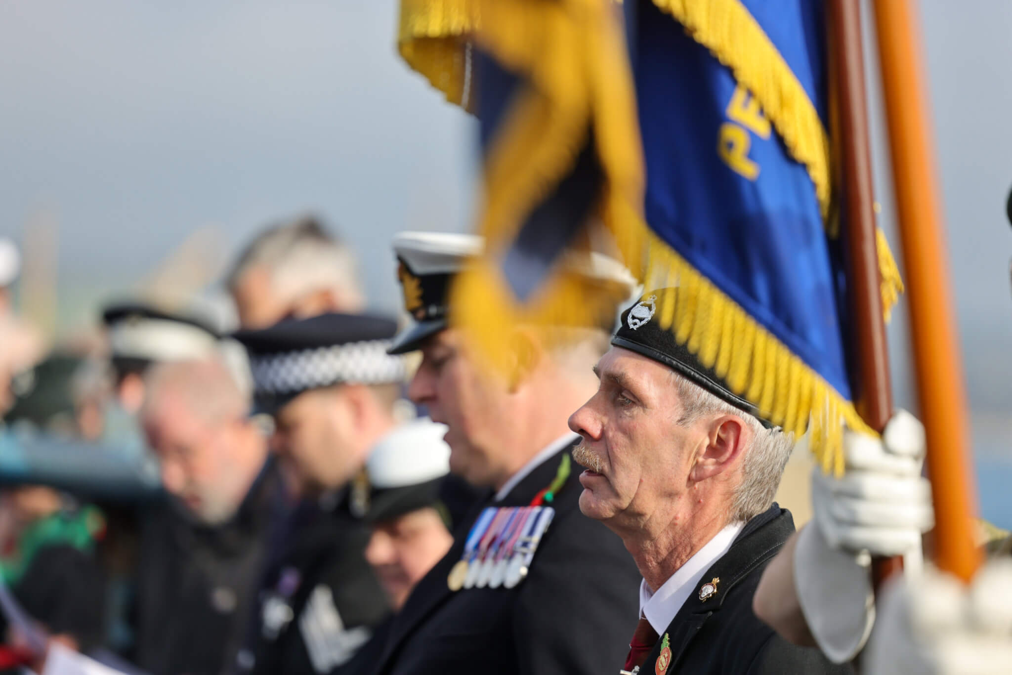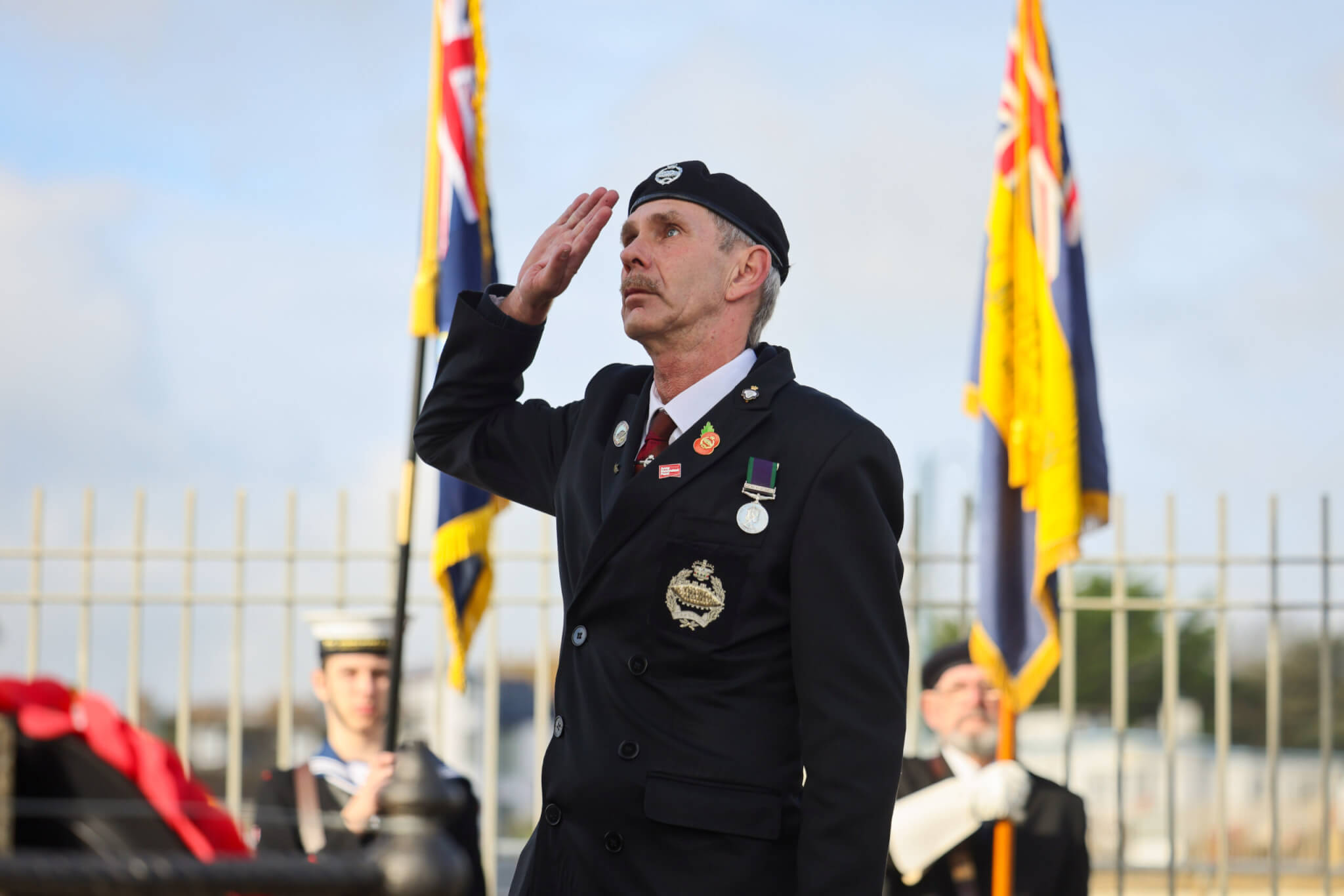 📷Standard bearer David Mytnik. The people of Penzance come together to honour the fallen on Sunday 10 November at the Remembrance Sunday Parade and Service organised by Penzance Council. Photo by Penzance Council