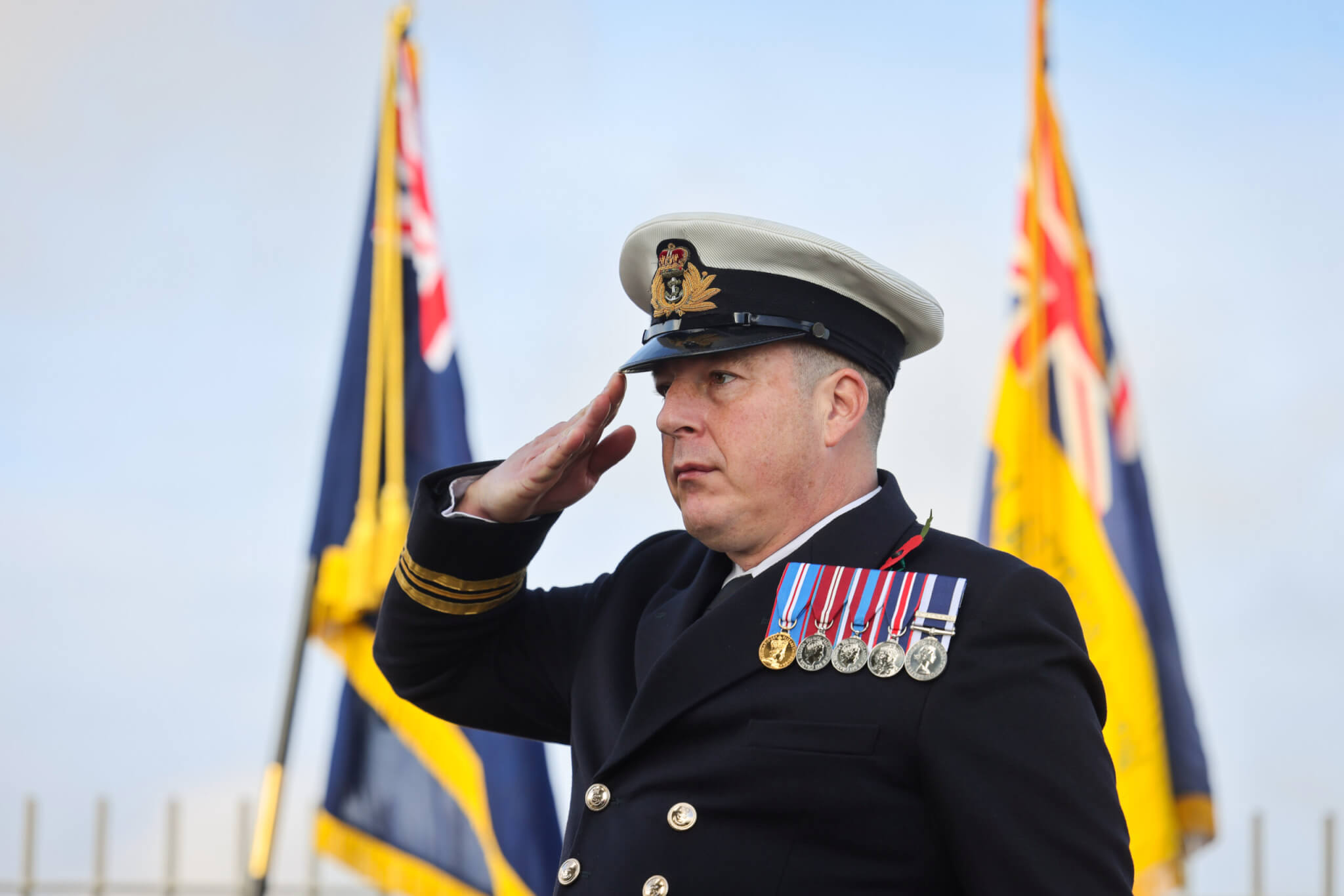 📷Lt Cdr Simon Stevenson from RNAS Culdrose. The people of Penzance come together to honour the fallen on Sunday 10 November at the Remembrance Sunday Parade and Service organised by Penzance Council. Photo by Penzance Council