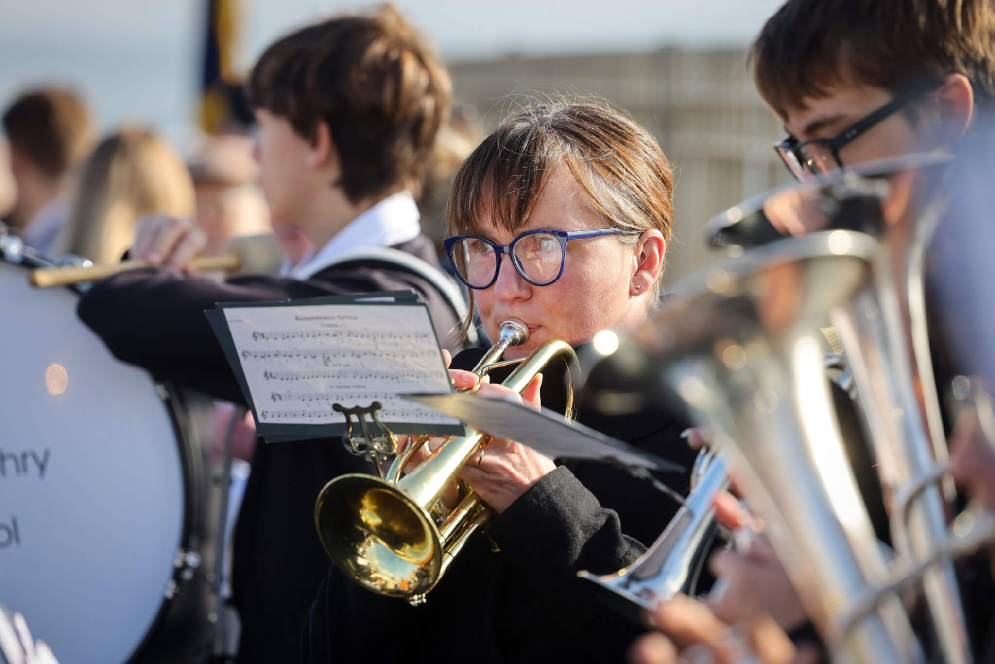 📷Helen Wright from Penzance Silver Band. The people of Penzance come together to honour the fallen on Sunday 10 November at the Remembrance Sunday Parade and Service organised by Penzance Council. Photo by Penzance Council
