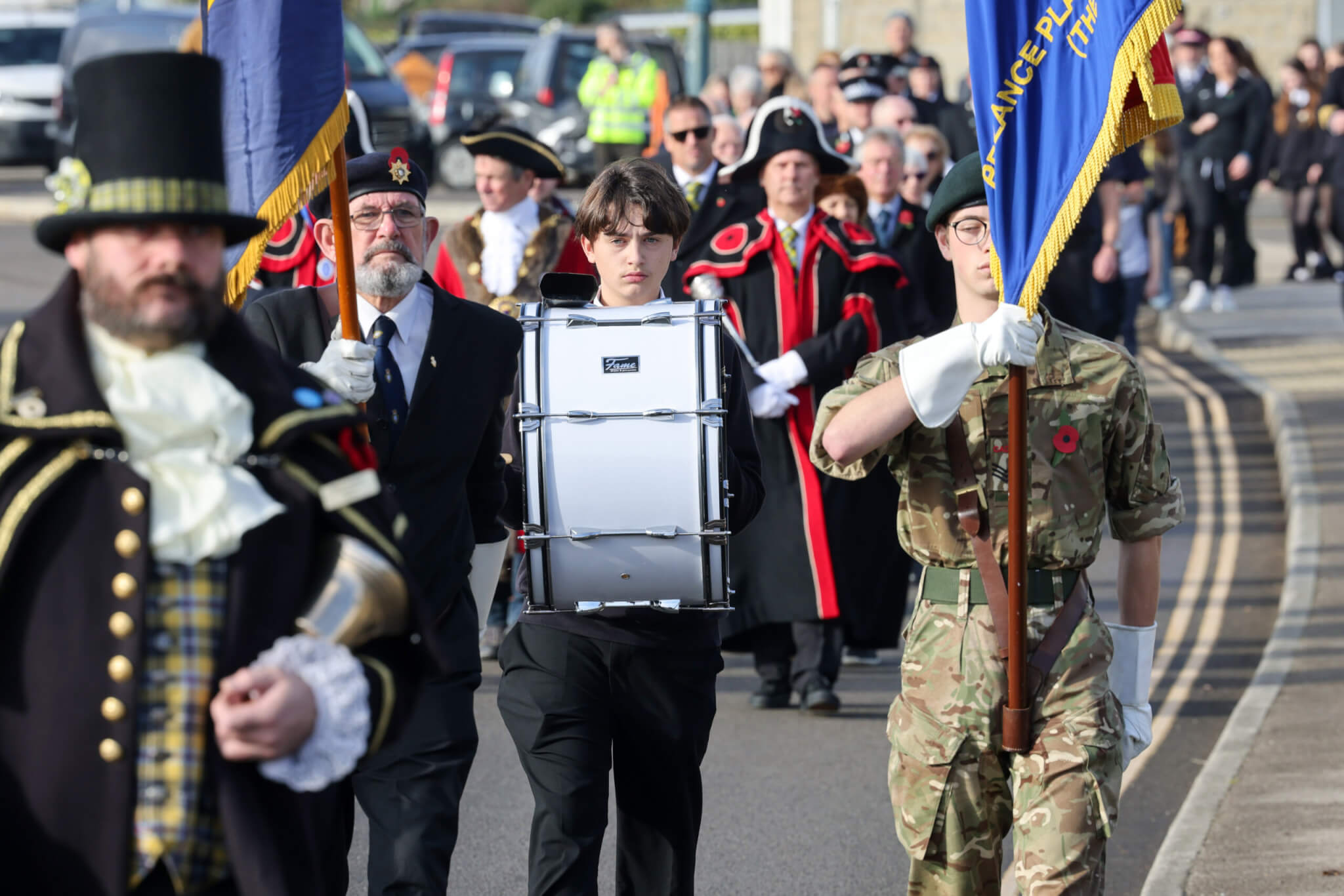📷Drummer Tom Wheatley. The people of Penzance come together to honour the fallen on Sunday 10 November at the Remembrance Sunday Parade and Service organised by Penzance Council. Photo by Penzance Council