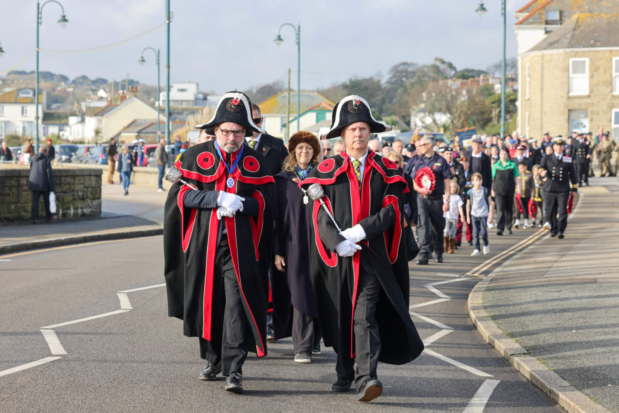📷Mace bearers Simon Reed and Andy Chellew. The people of Penzance come together to honour the fallen on Sunday 10 November at the Remembrance Sunday Parade and Service organised by Penzance Council. Photo by Penzance Council