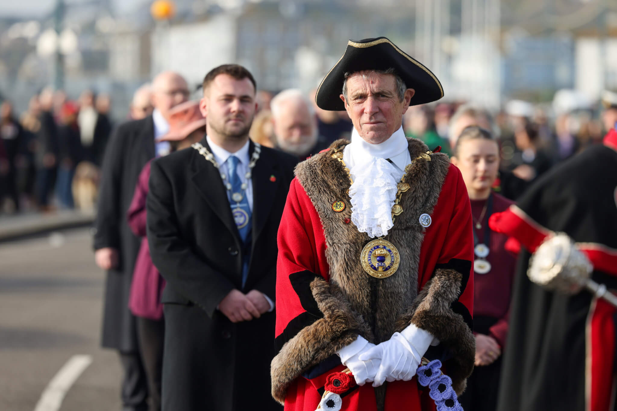 📷Mayor of Penzance Stephen Reynolds. The people of Penzance come together to honour the fallen on Sunday 10 November at the Remembrance Sunday Parade and Service organised by Penzance Council. Photo by Penzance Council