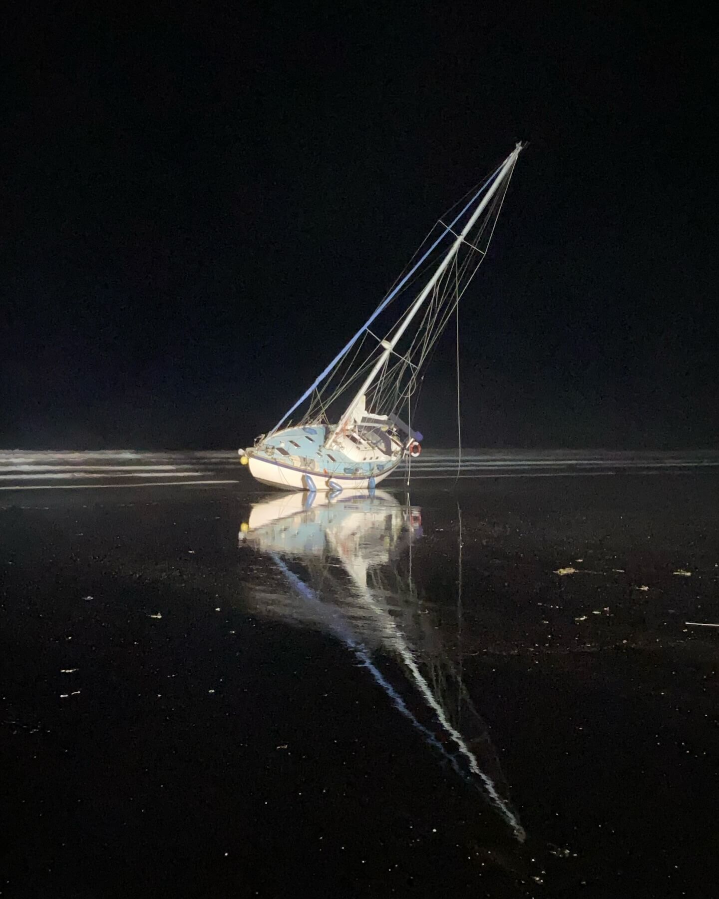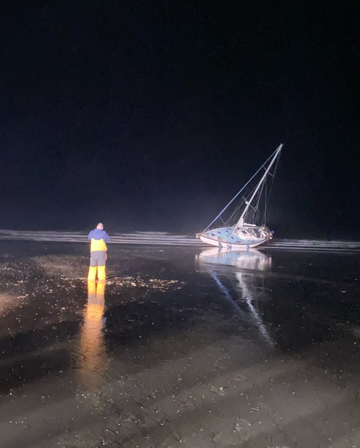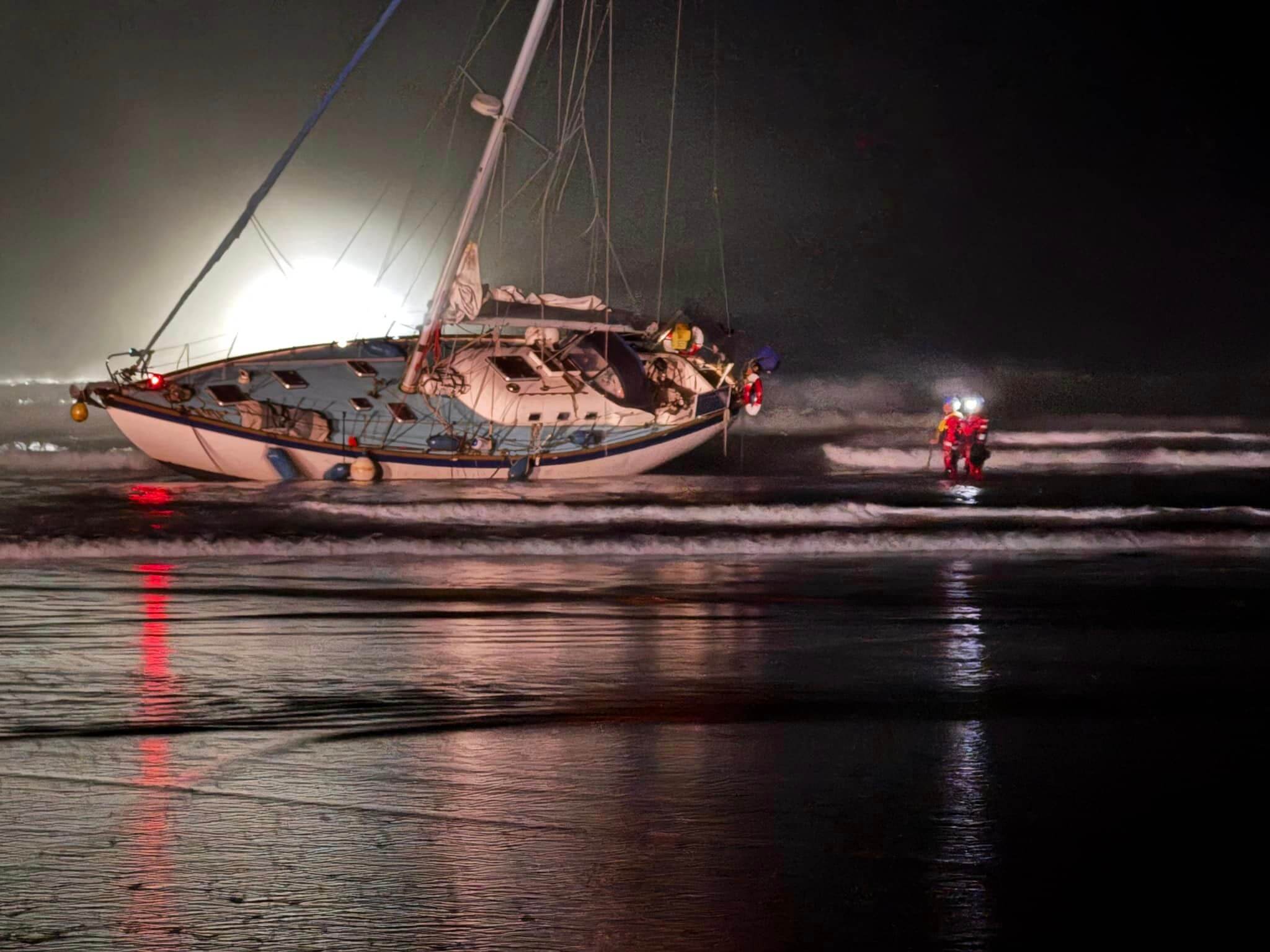 When Polzeath Coastguard arrived, they found a large yacht stranded on the beach, just within the surf line. Three coastguard members from the team suited up in dry suits and entered the water to reach the vessel and aid the captain. At the same time, both Padstow and Rock lifeboats maintained a safety perimeter just beyond the surf, ensuring further protection in case conditions worsened.