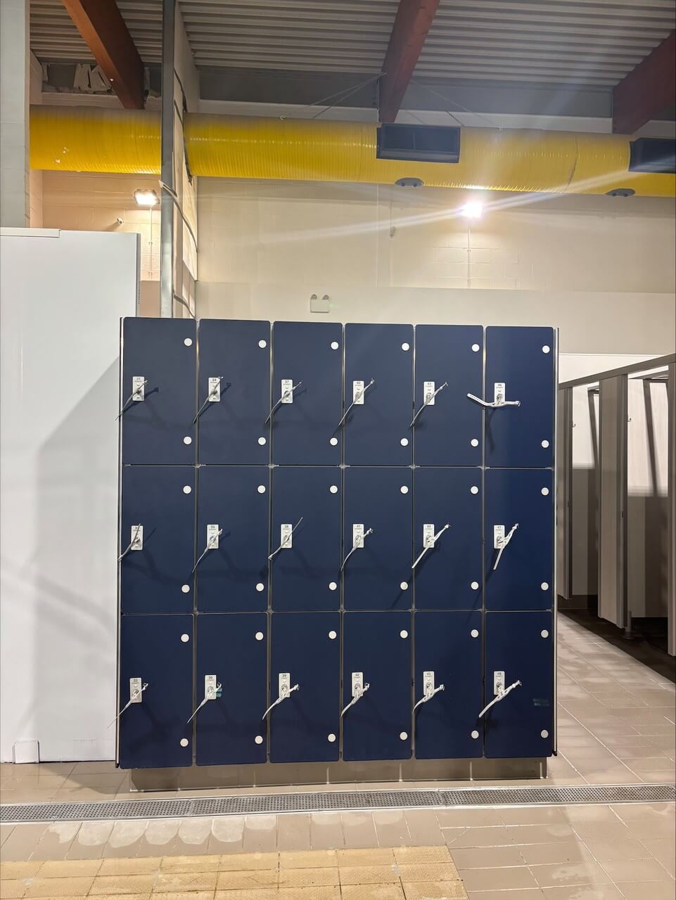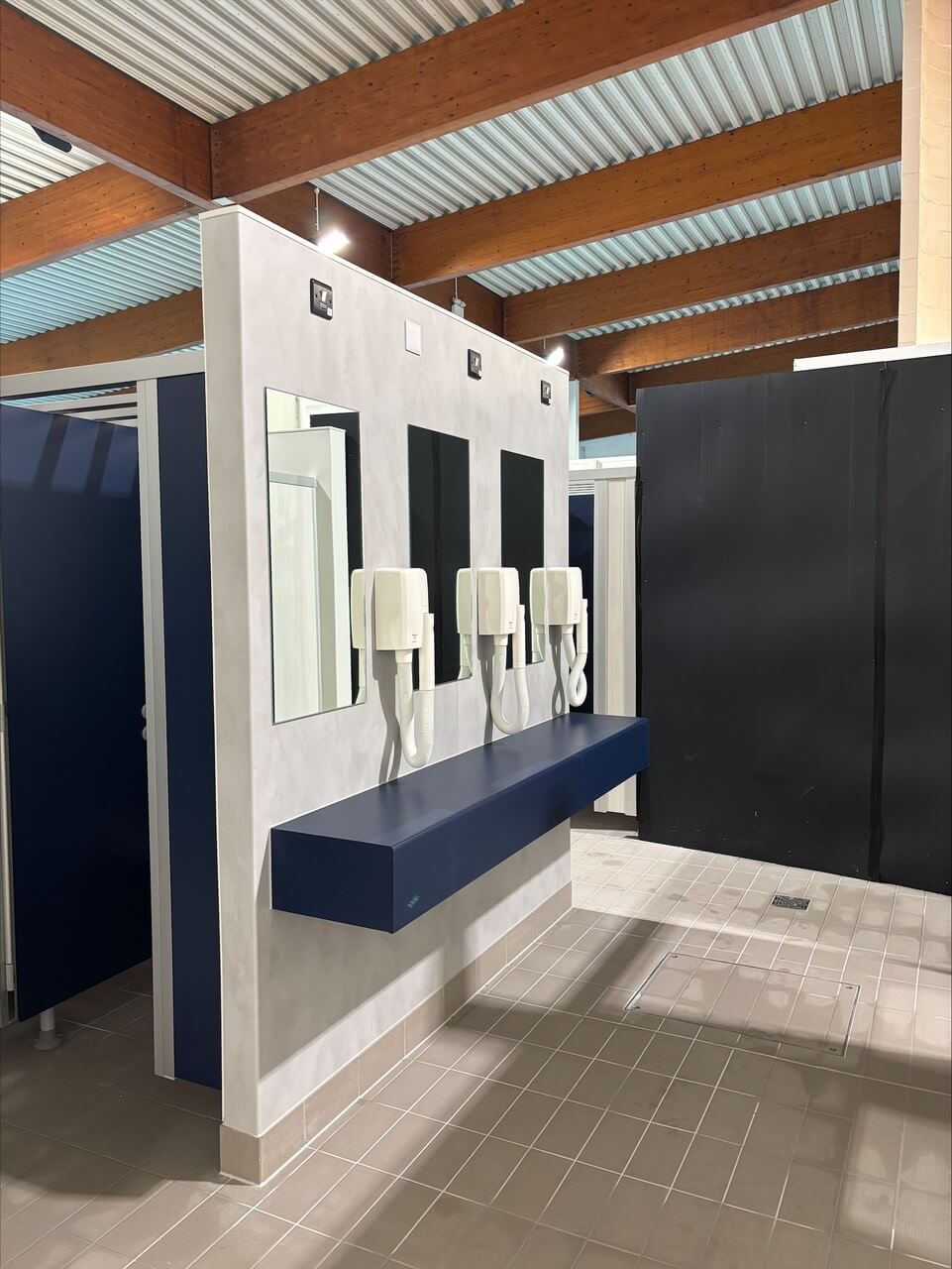 The new facilities include an accessible toilet and five showers. Two are designed for families, one is accessible, and two are currently housed in temporary cubicles. These temporary showers will be replaced by communal showers during the next stage of the development.