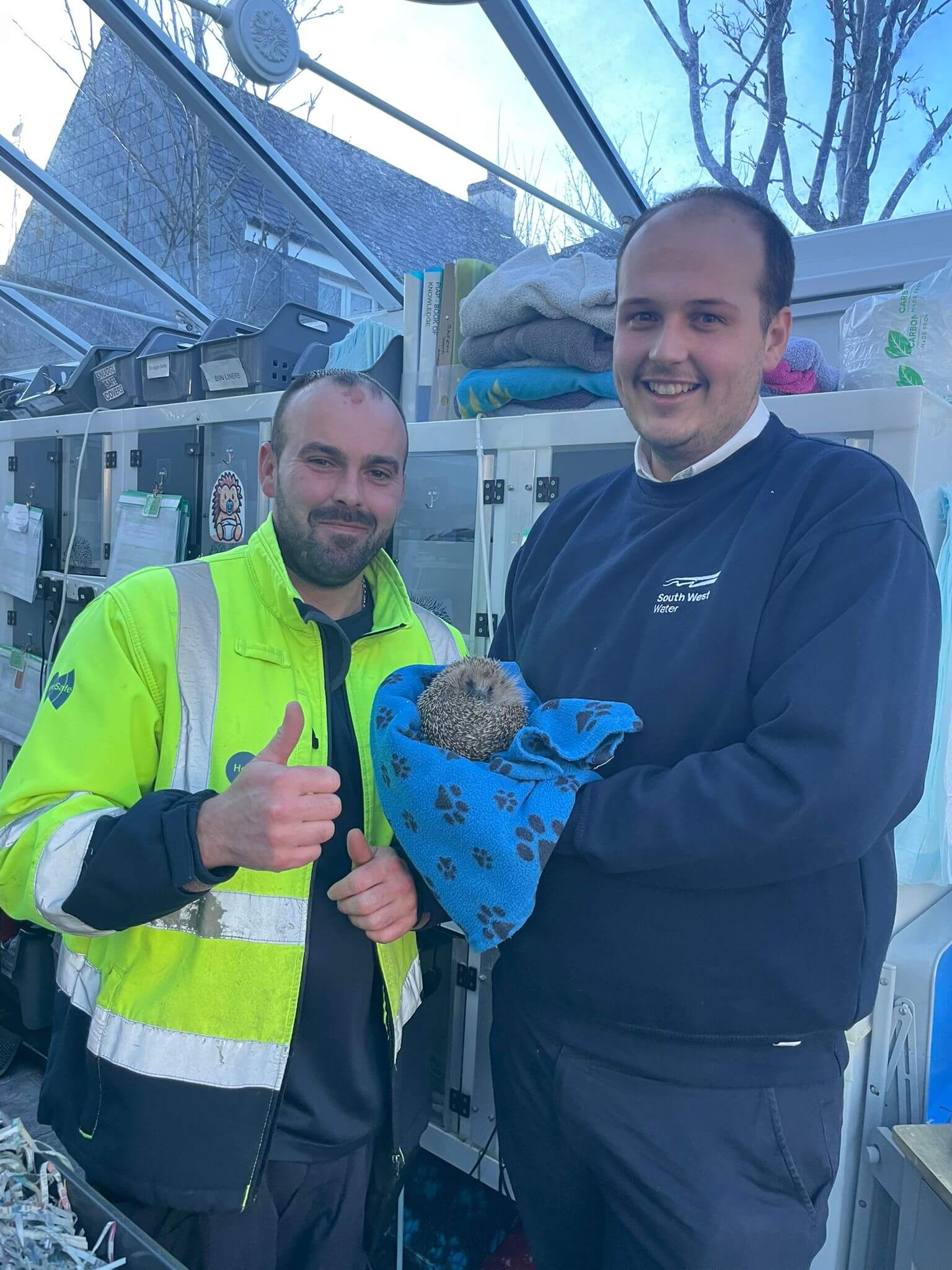 A routine site inspection turned into an unexpected rescue after South West Water colleagues Joe Martin and George Cane discovered a young hedgehog stranded at the bottom of an underground storm tank near Blackawton, close to Dartmouth.