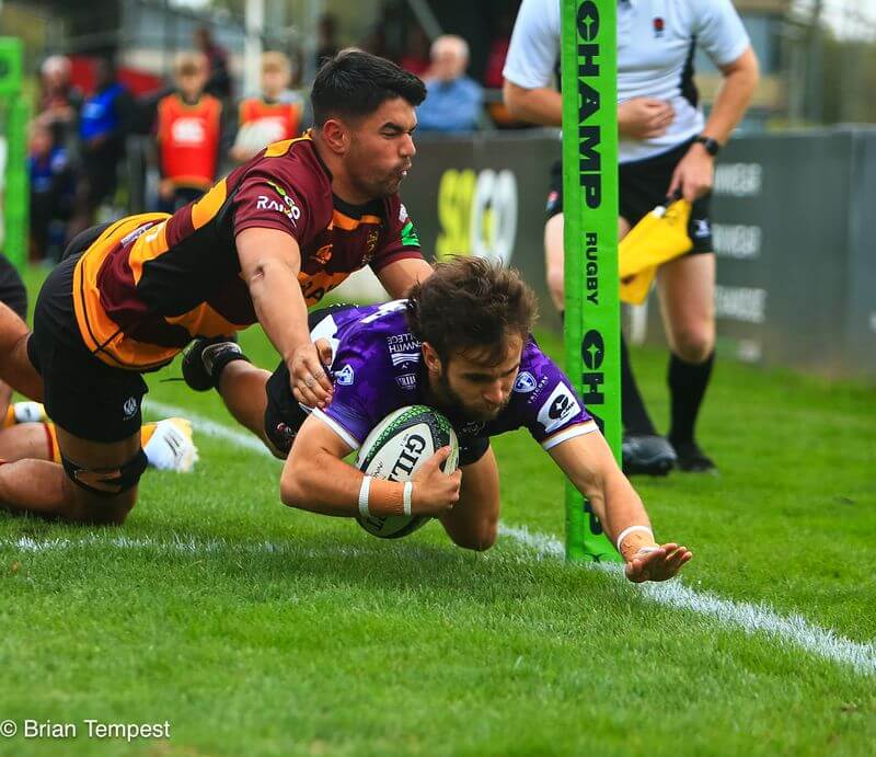 Ampthill did not take long to respond, with gifted full-back Josh Barton gathering the ball and setting off on a counter that was supported by try-scorer Noah Caluori, a teenage sensation who only recently opened his account on league debut for Saracens against Newcastle Red Bulls. Fly-half Lewis Grimoldby stepped forward and landed the conversion to level matters.