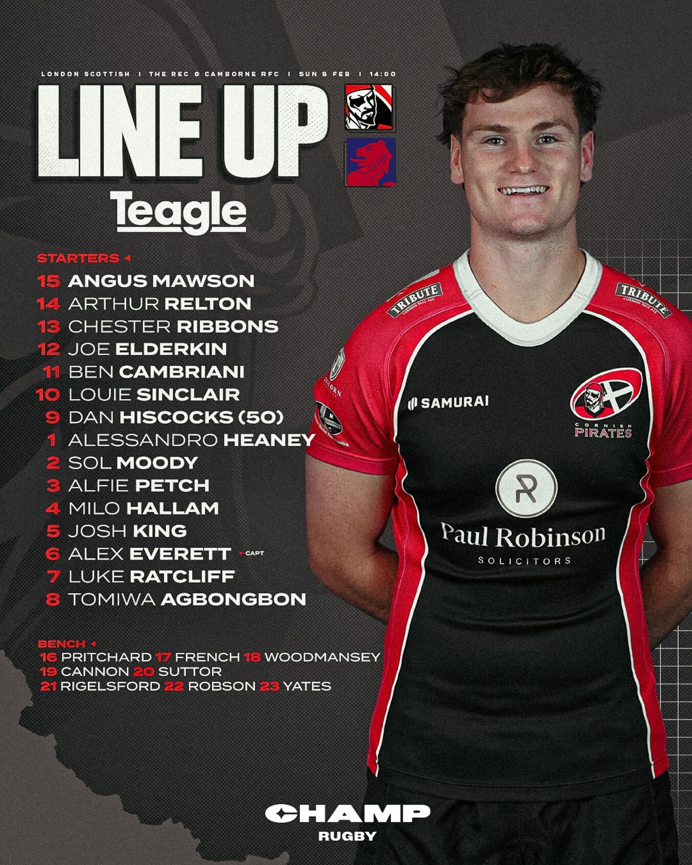 At scrum half, Dan Hiscocks will mark a personal milestone, with Sunday’s match being his 50th appearance for the Pirates in under two seasons.